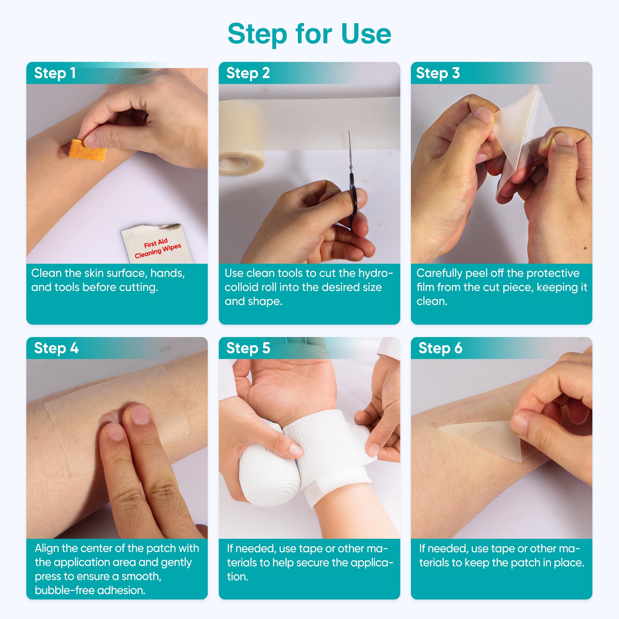 Absorbs Exudate: The Hydrocolloid Bandages Roll surface provides a secure barrier that helps keep out dust and impurities. Hydrocolloid Tape absorbs excess fluid and transforms into a soft gel, maintaining the right moisture balance. This design makes care more gentle and comfortable, especially during changes