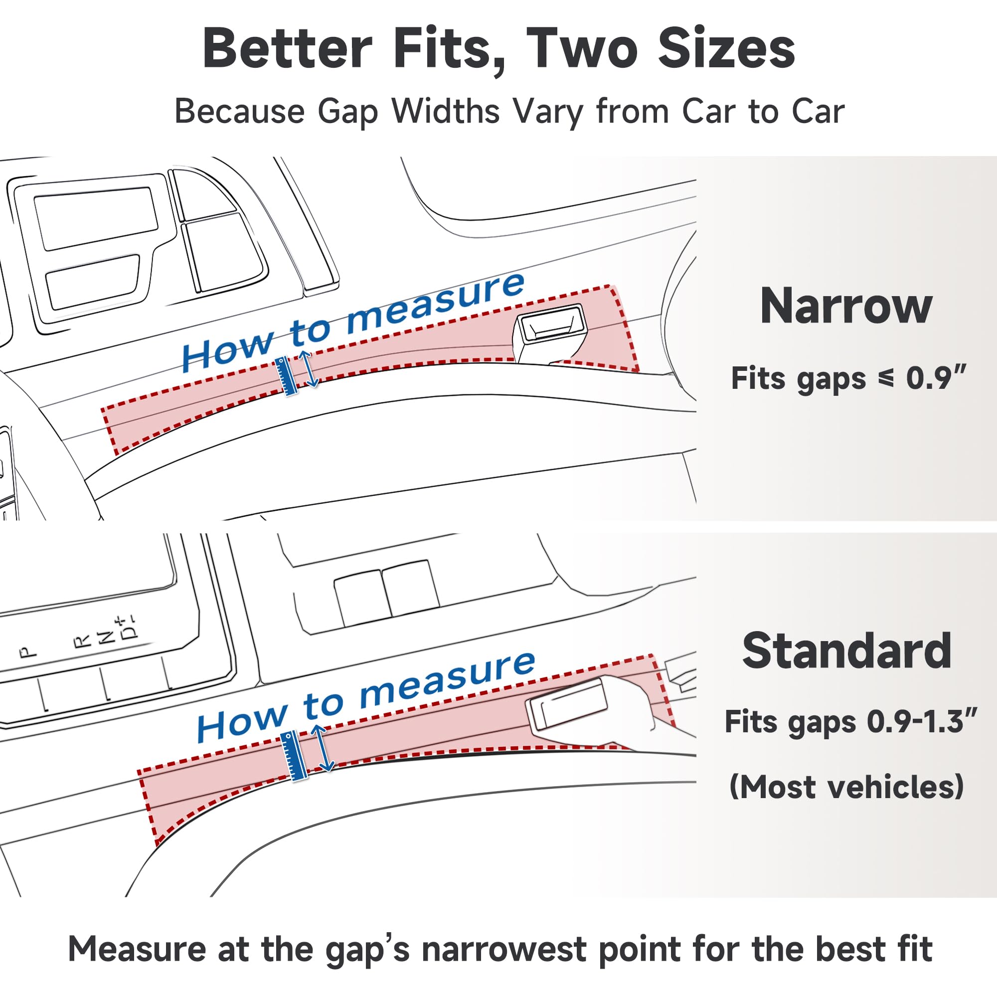 Easy to install, Less troubles: Car fillers between seats attaches to the seat belt catch via built in slot. They will move with the seat and no need to readjust or reinstall. Provides full Gap Coverage in front of, surrounding and behind seat belt catch