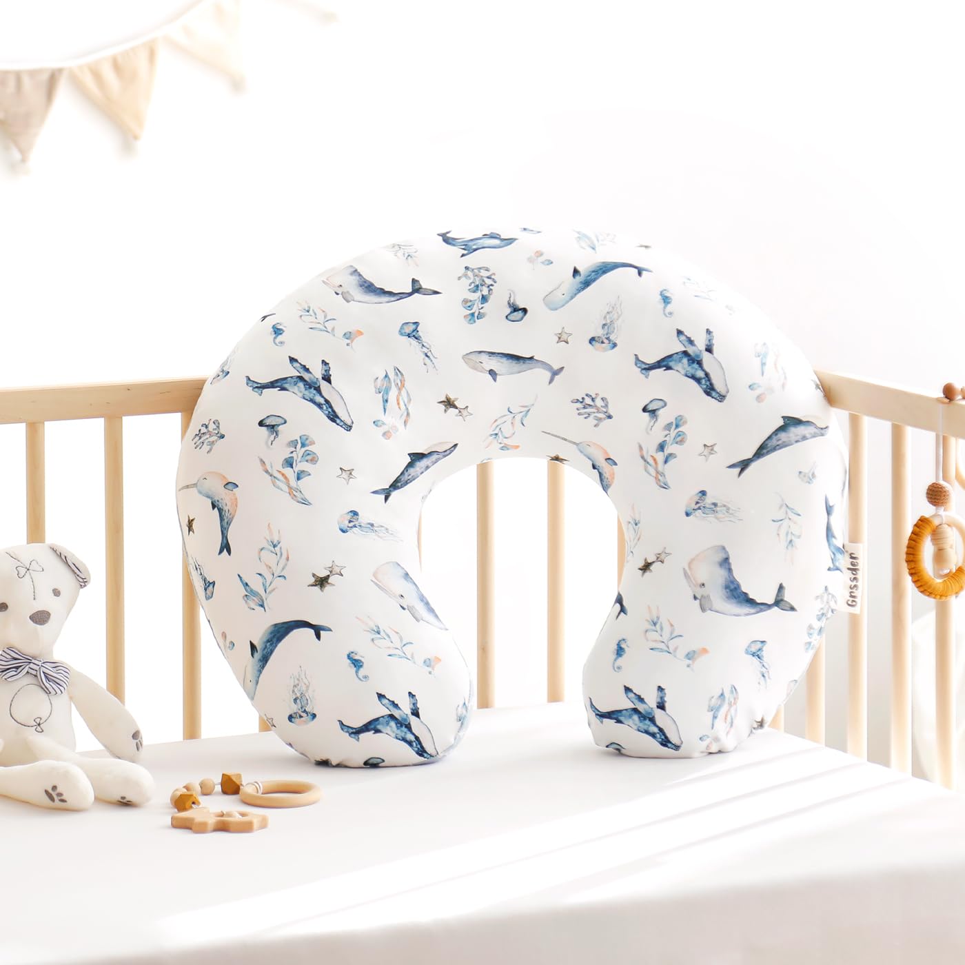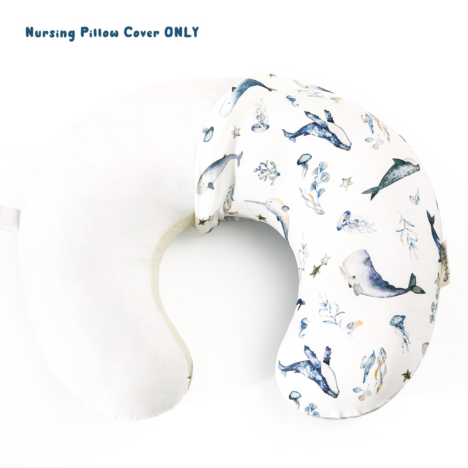 GRSSDER Reversible Nursing Pillow Cover, Ultra Soft Stretchy Minky Removable Nursing Covers Fitted for Breastfeeding Pillows Snug and Safe, Sea Fish