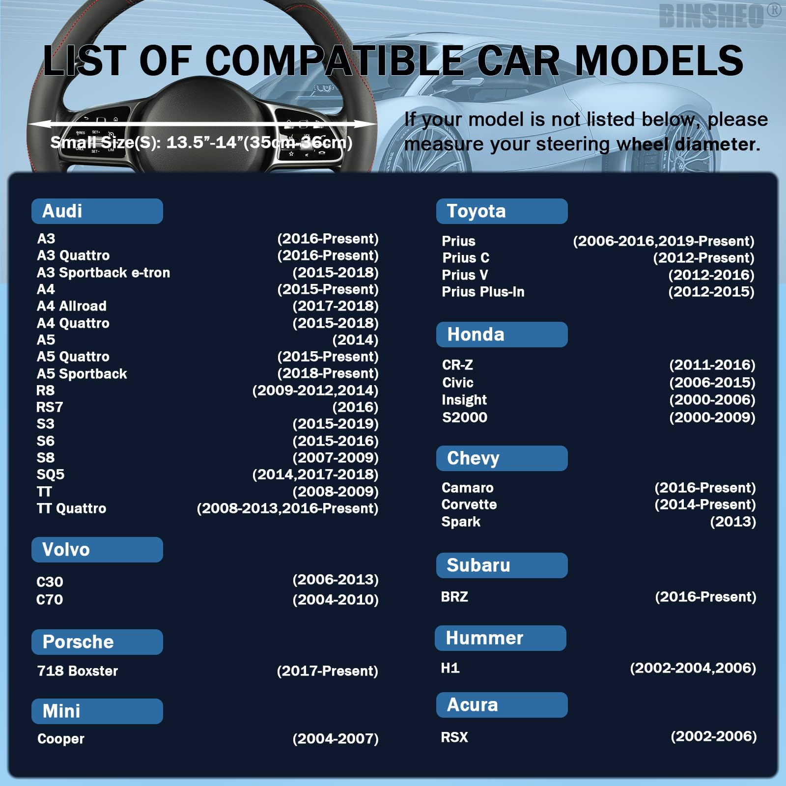 [Applicable] - Fits all small steering wheels from 13.5 inches to 14 inches (36 cm) in diameter, including car steering wheel covers (Prius, Civic, S, etc.), boat steering wheel covers, golf cart steering wheel covers (Club Car and Yamaha, etc.). Measure your steering wheel size carefully before purchasing please.