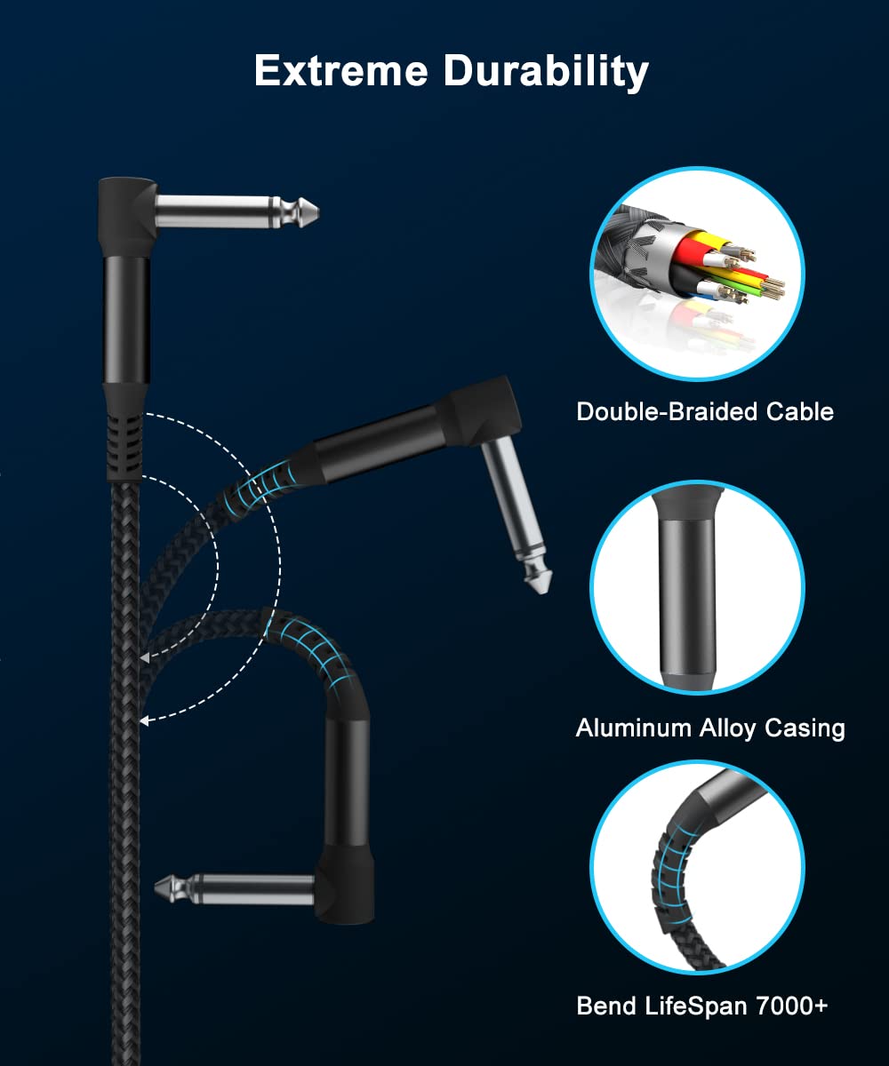 (Built to last, Born for Longevity) Spare yourself all the nickel-and-dimming from all the shoddy cables and get one that can be your true best bud on your musical expedition. The hard shell of this cable, paired with right-angle design of the jack, is simply the most effective armor against all the twists and stretches while you wield and battle in the realm of music.