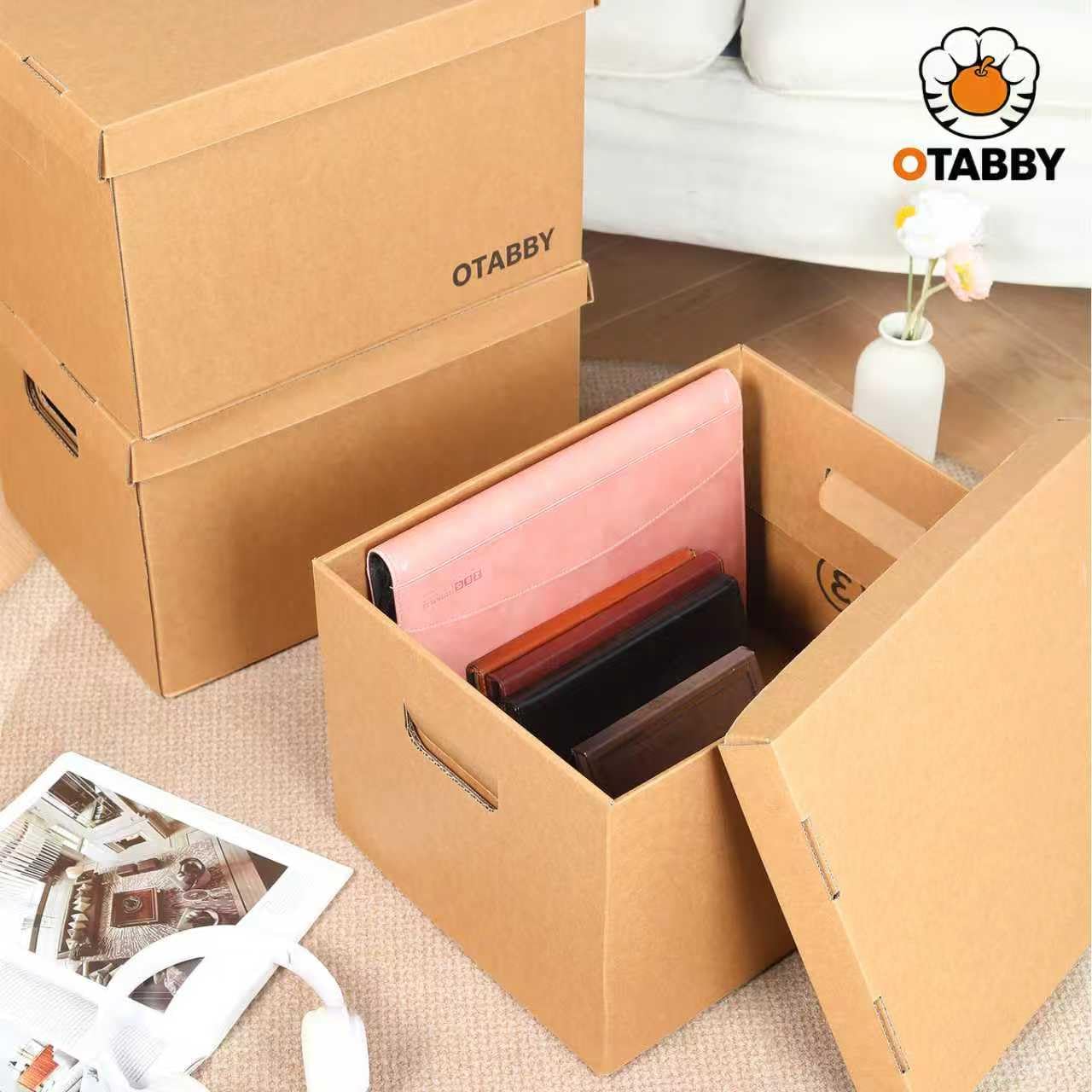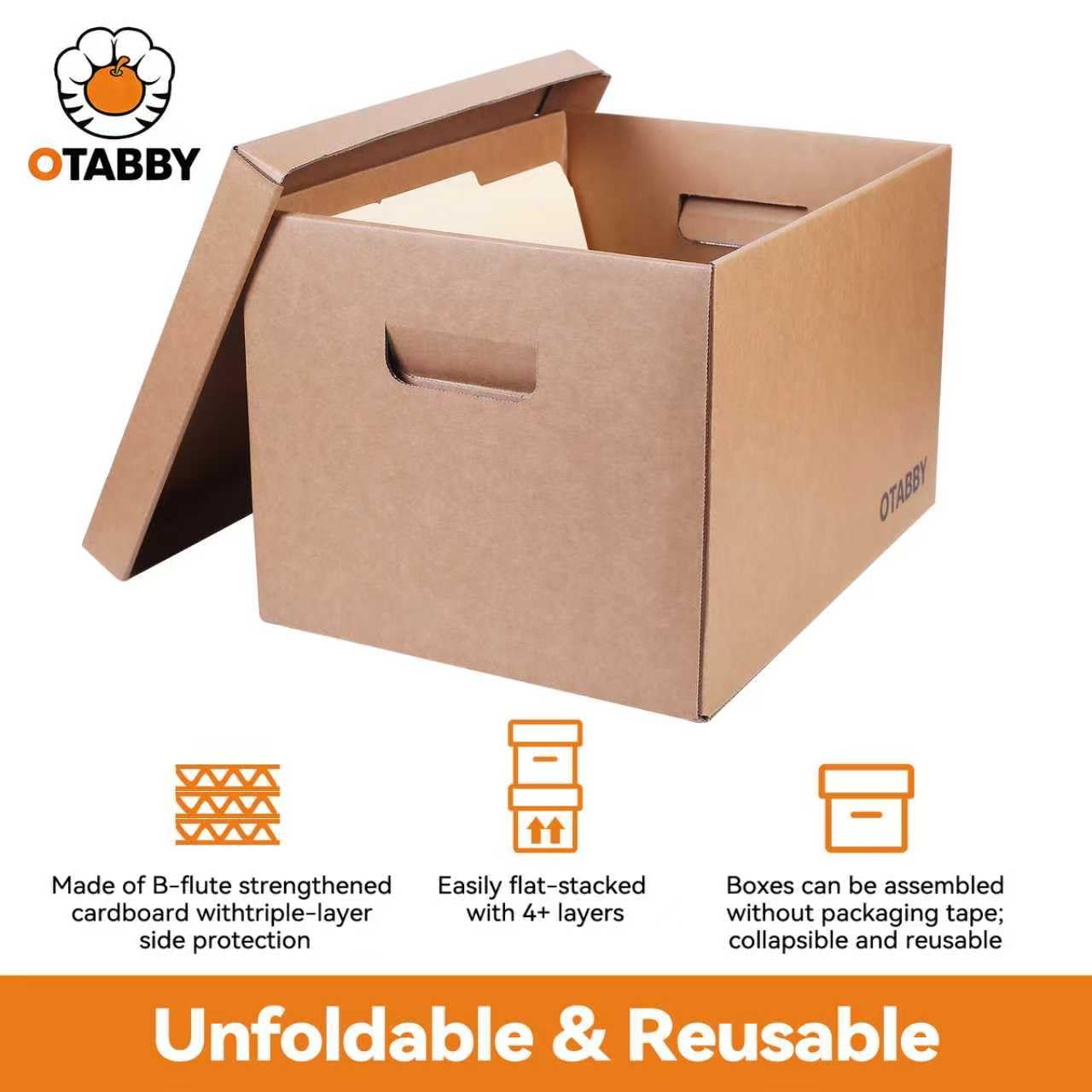 OTABBY Archival Storage Cartons ◆Triple-Layer Kraft Construction: 25lbweight capacity | Reinforced corners for stable stacking ◆Size: 12” x 16” x 10.5” | Holds up to 150letter-sized docs ◆Weight: 10lbs (per 8-pack) Heavy-Duty Kraft Storage for Documents,Photos, Framed Art and More Tough, Versatile Storage for Every Need ◆Home Offices: Tax records, contracts, andfile organization ◆Creative Studios: Art portfolios, framedprints, and scrapbooking supplies ◆Schools/Libraries: Archiving textbooks,magazines, and research materials ◆Households: Seasonal decor, clothing, andlinen storage