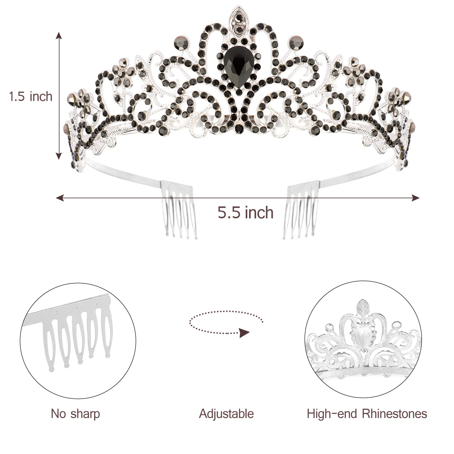 Rhinestone Tiara: Made of high quality clear crystals in Gold-plated metal setting, eco-friendly. Perfect for any party use. It can also be used as a good photo prop, princess and queen style photos can be taken at any time. Besides, the end of the Crown headband has a comb for fixing the headband on your hair, preventing the slipping of the headband