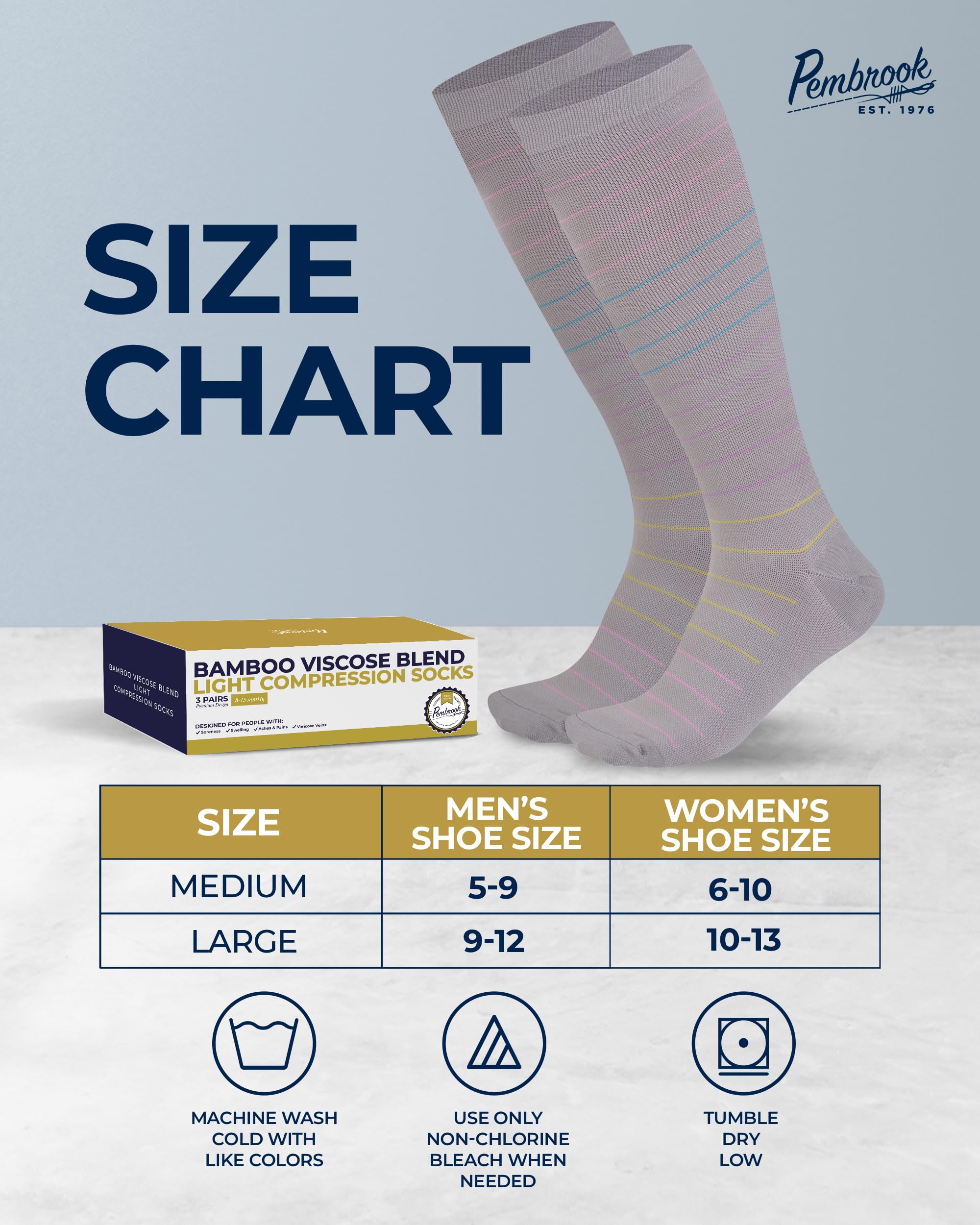 Premium Material - Pembrook mens and womens light compression socks feature viscose derived from bamboo, ensuring enduring freshness. With moisture-wicking and temperature regulation, these socks can withstand any climate.