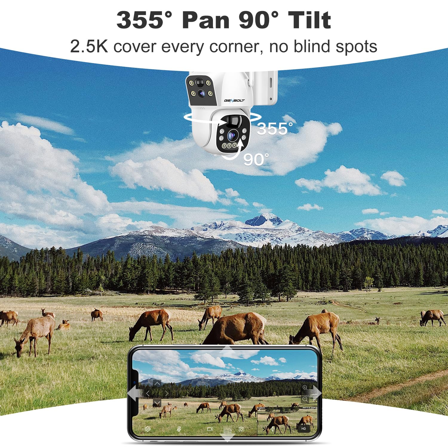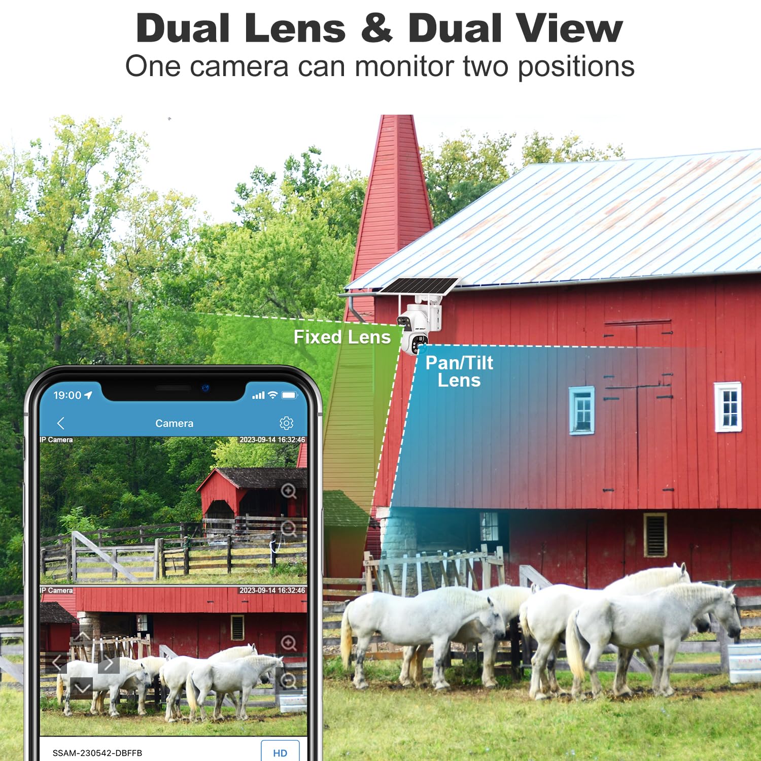 π[Dual Lens & Dual Screen] The 4G cctv camera outdoor with sim features a dual lens design for comprehensive coverage, no blind spots. The upper bullet camera is fixed in one place to provide a wide angle defense. The PT dome camera can rotated 355Β°/90Β°. So you can view one same or two different areas at the same time by using one camera