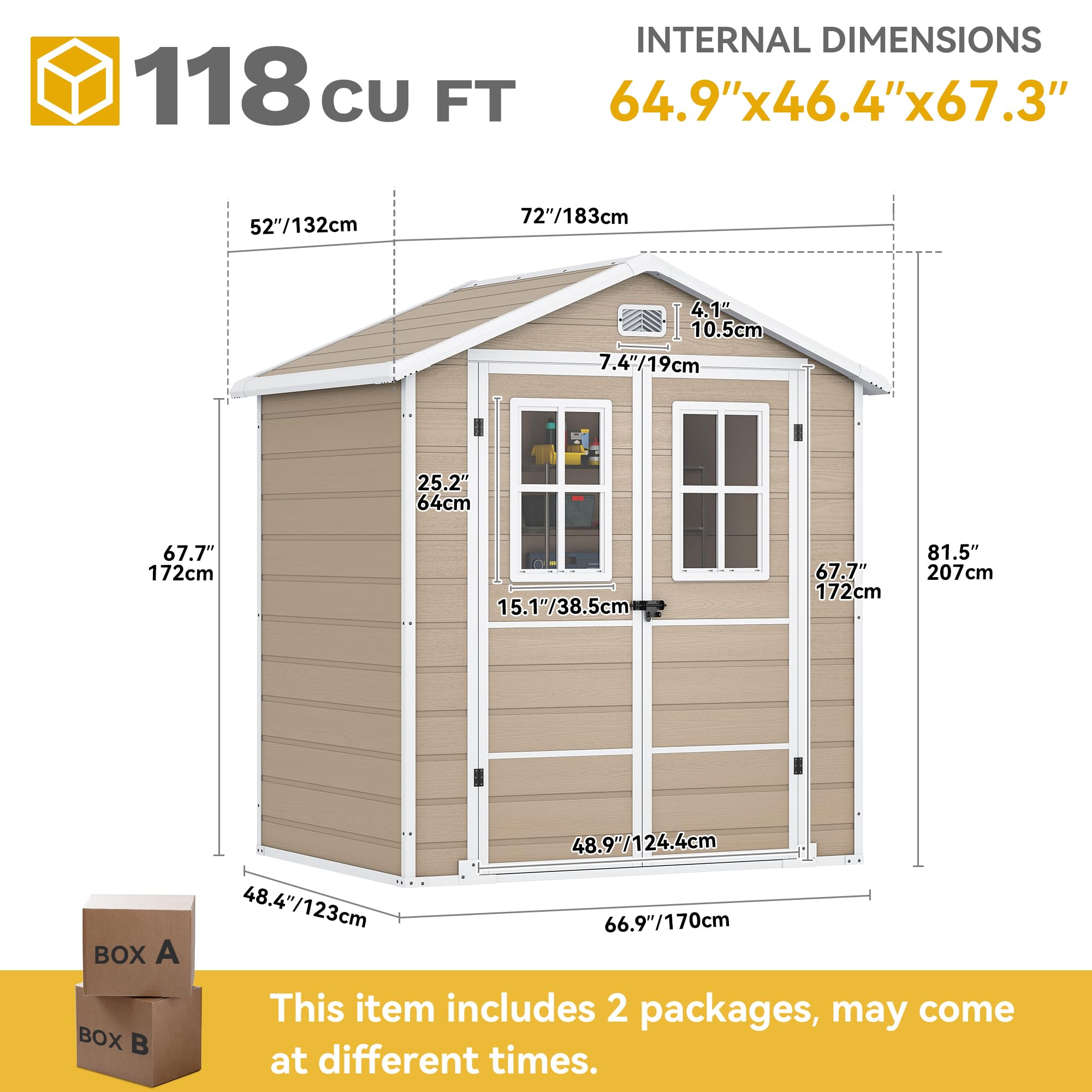 Quick, Effortless Setup: This outdoor storage shed comes in two boxes, which may arrive at different times. Assembly is as easy as stacking blocks, with pre-labeled parts and clear instructions. Grab a friend, and you'll have it set up in no time, no much installation experience needed