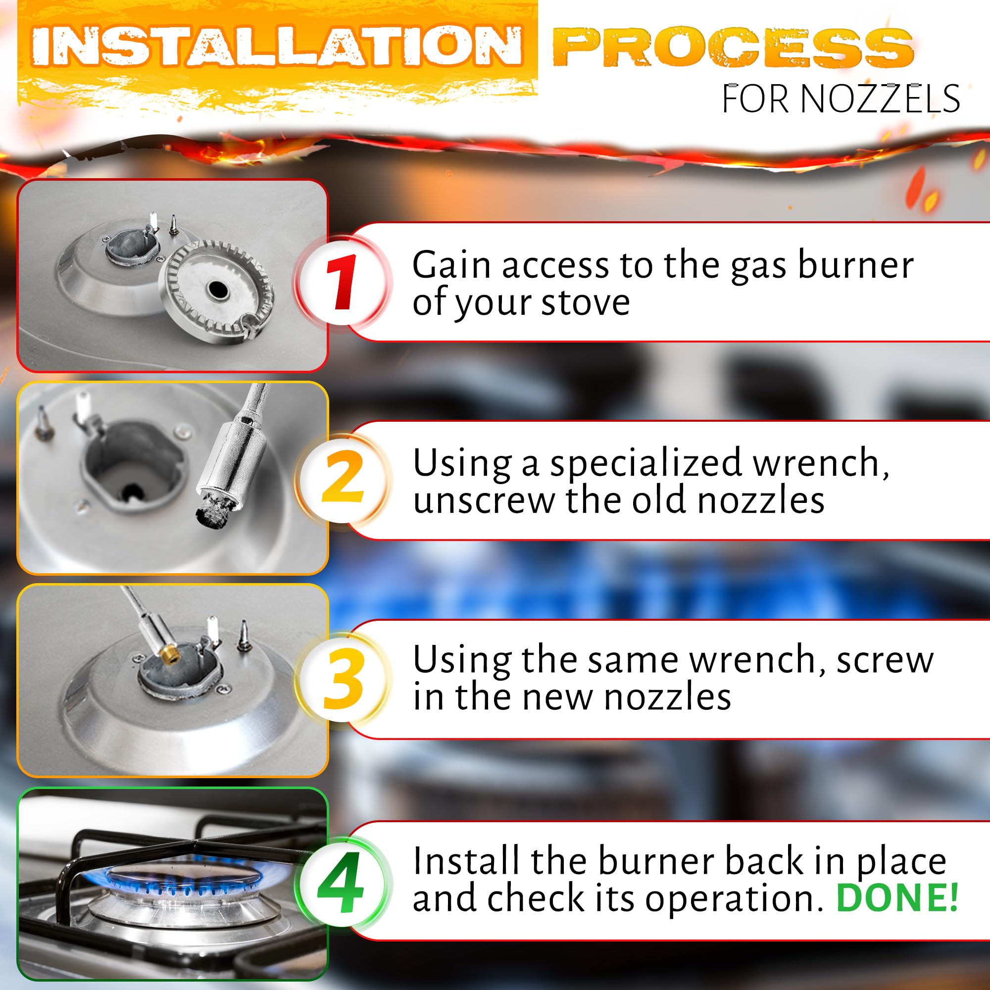 ⚠️Important Note⚠️: Check your grill model number before ordering to confirm proper fit. Each gas nozzle replacement has a 0.5mm hole, M6×0.75mm thread, 7mm hex, and 8mm height for correct installation