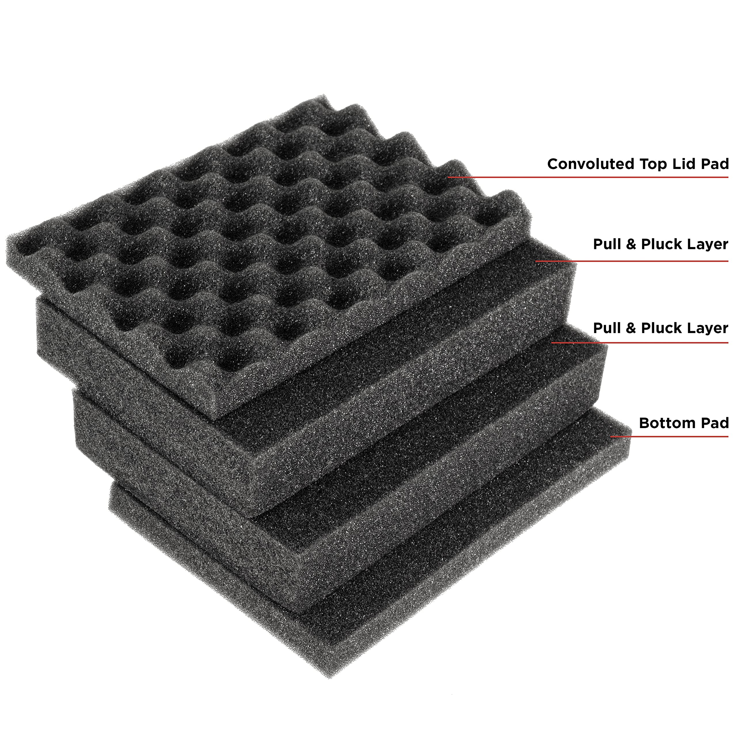 Includes 4 layers of foam; 1egg-crate top liner layer, 2 pull & pluck customizable layer, 1 solid layer.