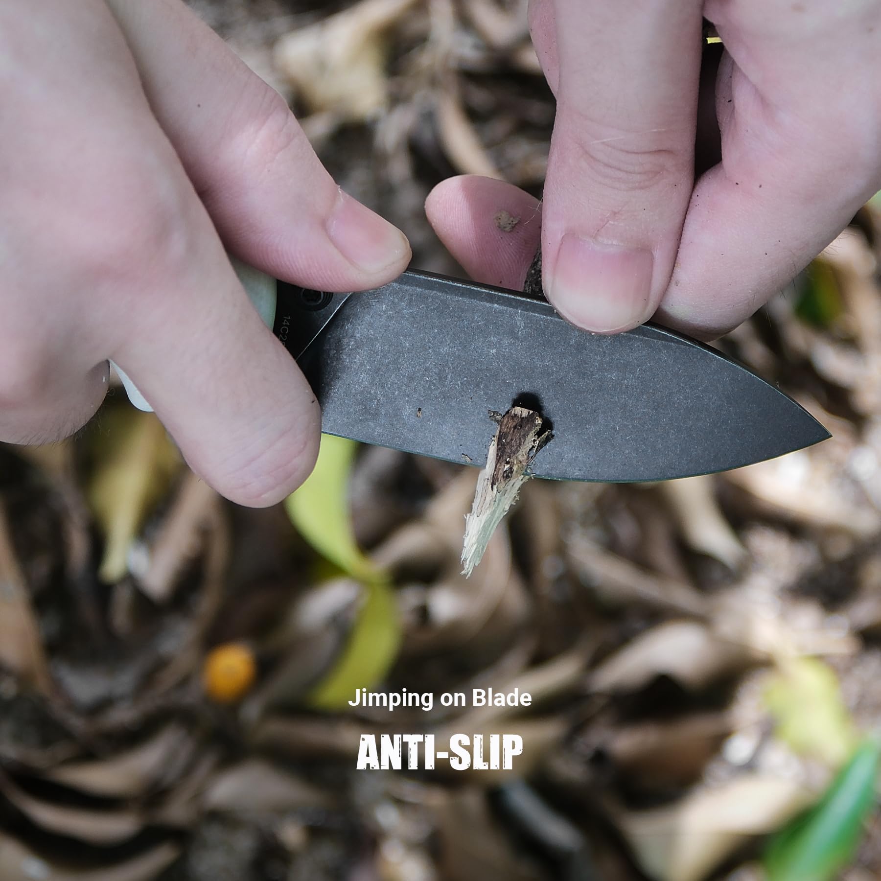 3.25" Black Stonewashed Blade: 14C28N blade steel offers excellent in-class corrosion resistance and toughness and is easy to sharpen. 3 to 1 blade length and width ratio, a nice belly, and a comfortable choil - A perfect small folding knife for Daily Carry, Hiking and Camping