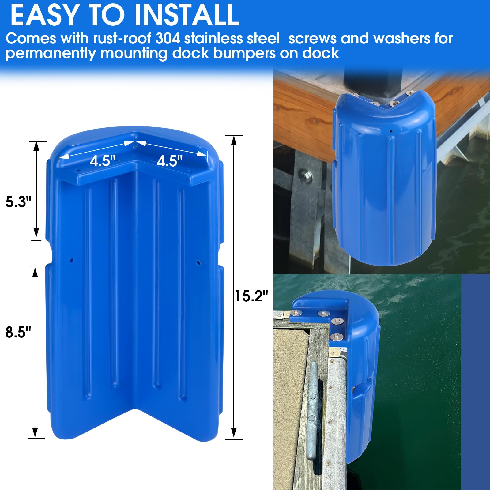 Premium Dock Corner Protector: Corner dock bumper fender combines inflatable fender and permanent dock bumper for ultimate dock corner protection. Install the dock bumper on the corner of the dock to protect both dock and boat from damage caused by collisions.