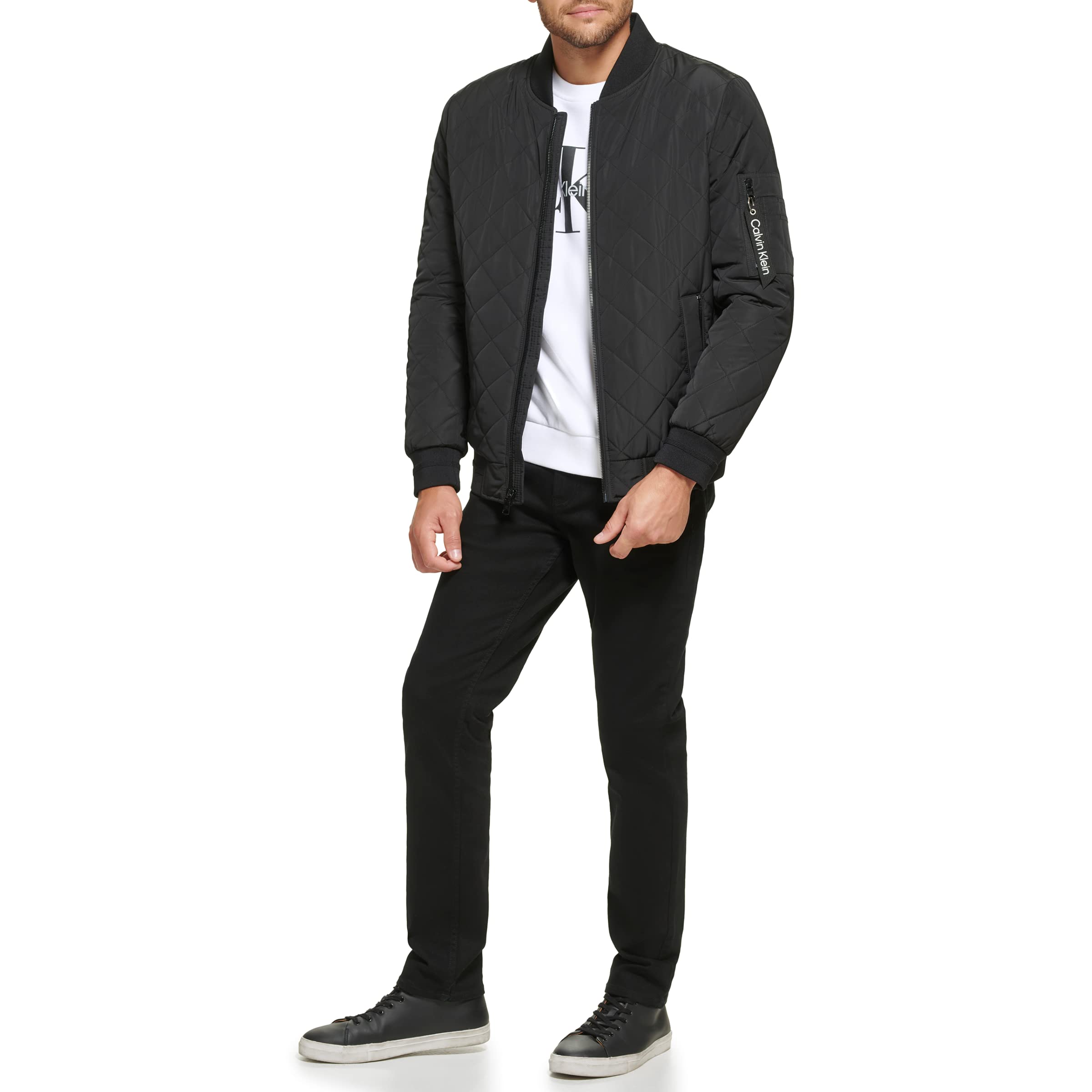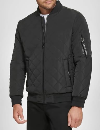 Stylish Details: Rib-knit hem, cuffs, and collar add a sleek touch; includes a removable Calvin Klein logo keychain for added flair