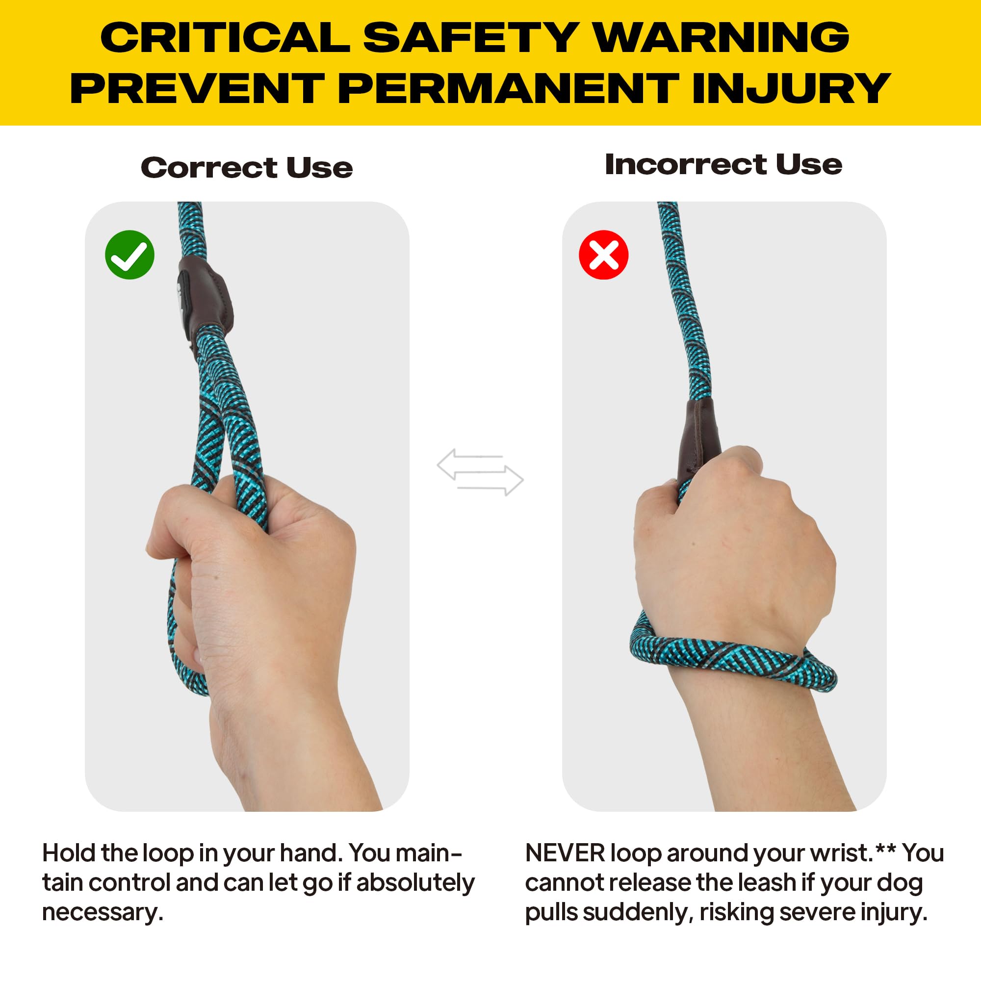 【SAFETY WARNING】: To prevent serious injury, never wrap the leash loop around your hand, wrist, or any other body part. Always hold the loop securely in your hand