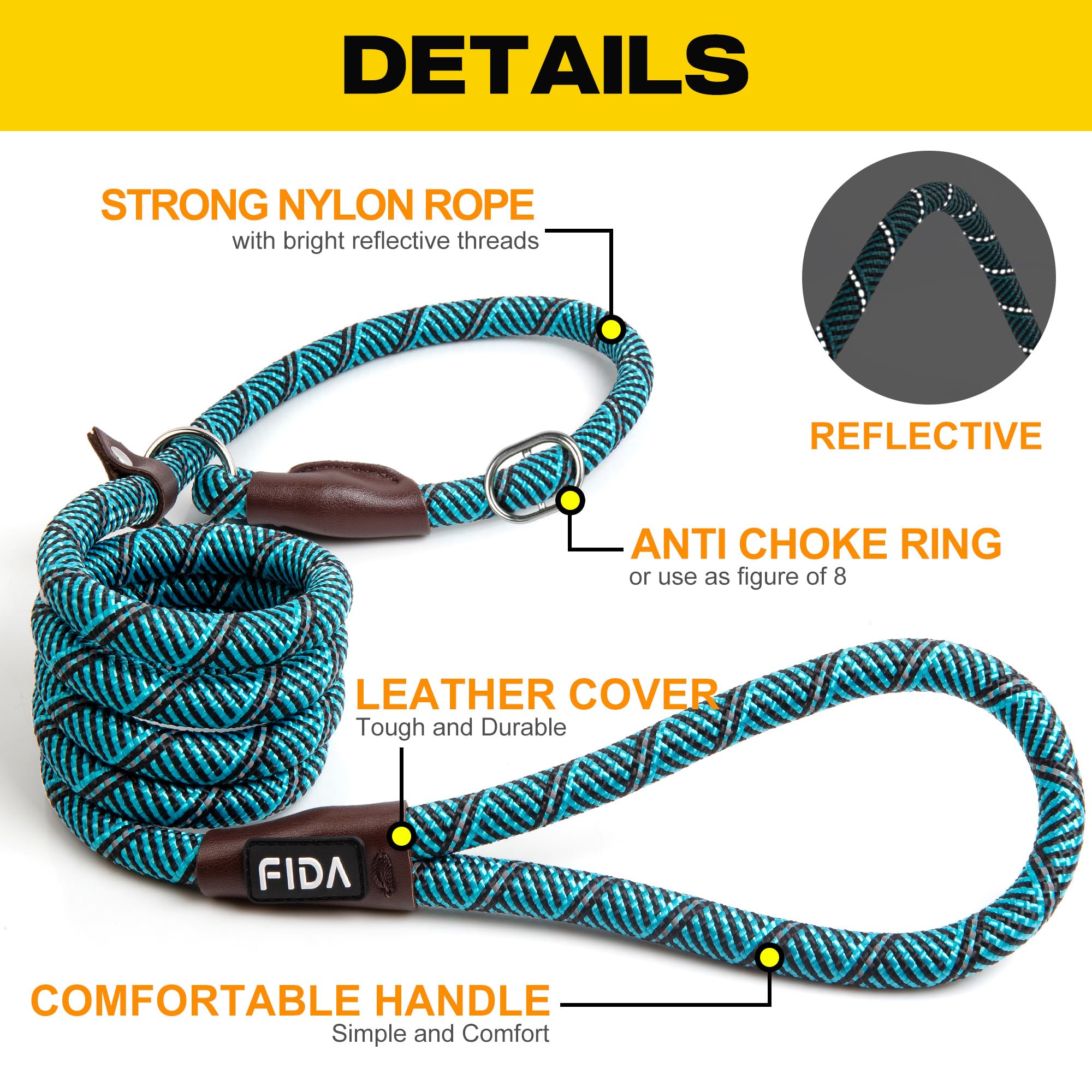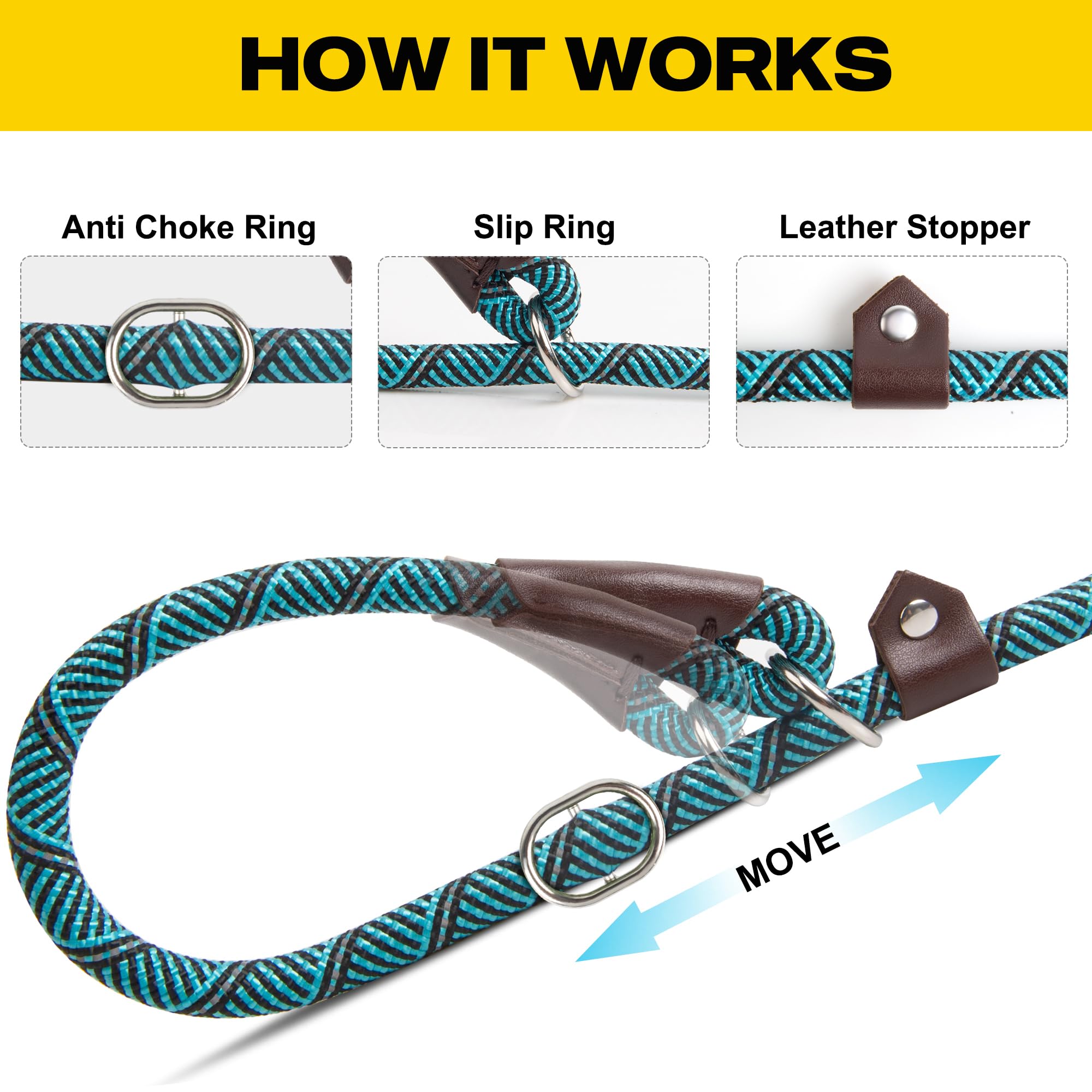 【STRONG & LIGHTWEIGHT】- These Premium Slip Leads for dogs are made of high strength nylon rope, super durable metal ring, and the knots bound with leather cover. 3/8” thick rope provide maximum durability and comfortable grip