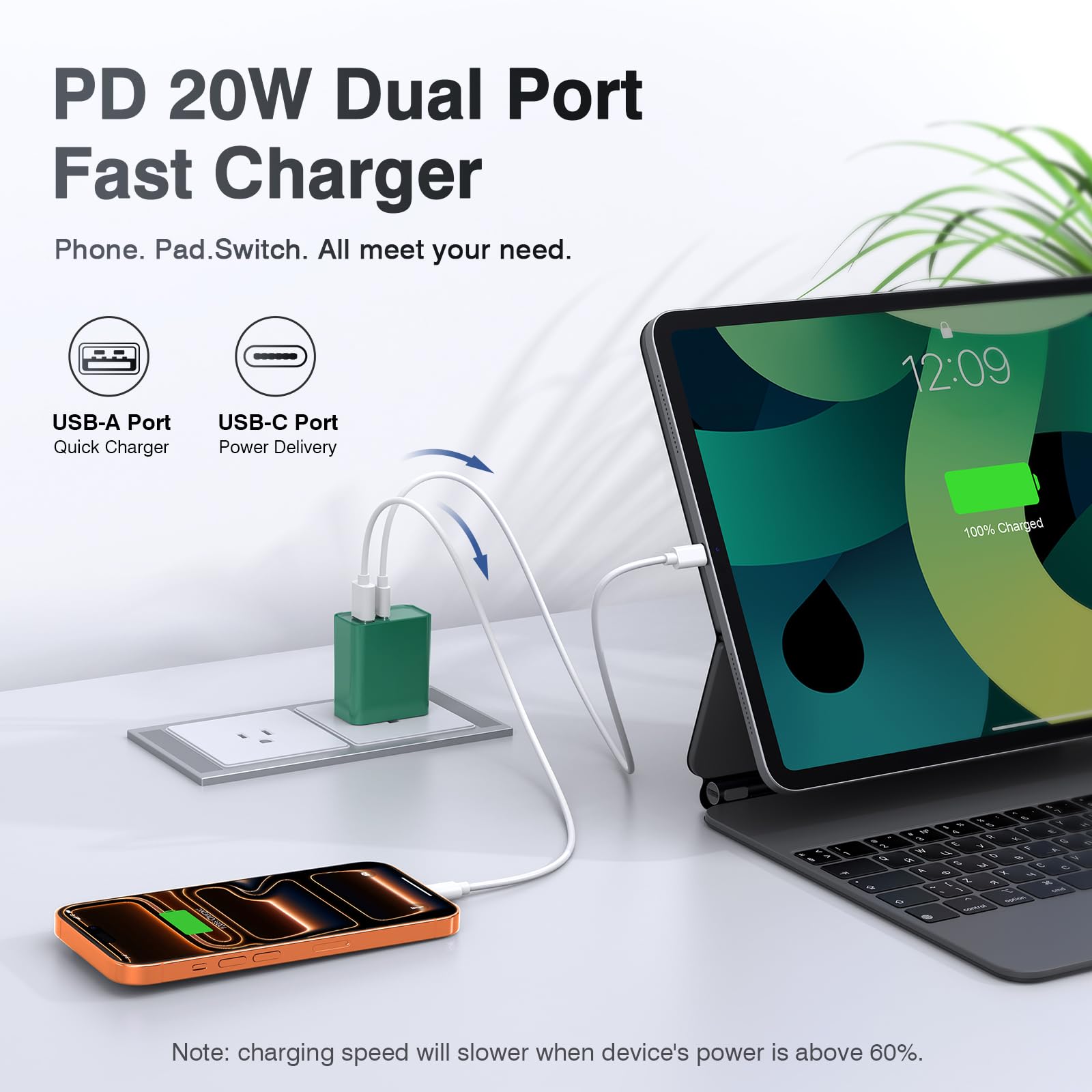 High-Speed Charging: The USB-C port supports a maximum power output of 20W. Dual-port design with USB-C and USB-Aļ¼charge two devices at the same time to minimize waiting time and frees you from messy chargers with various interfaces