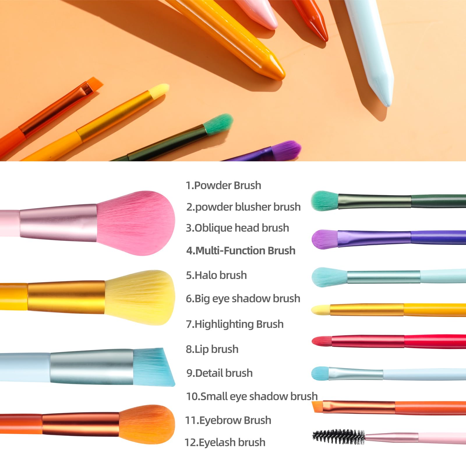 Fashionable Design: This set of 12 makeup brushes showcases a vibrant and trendy design that effortlessly adds an element of style to your makeup routine.