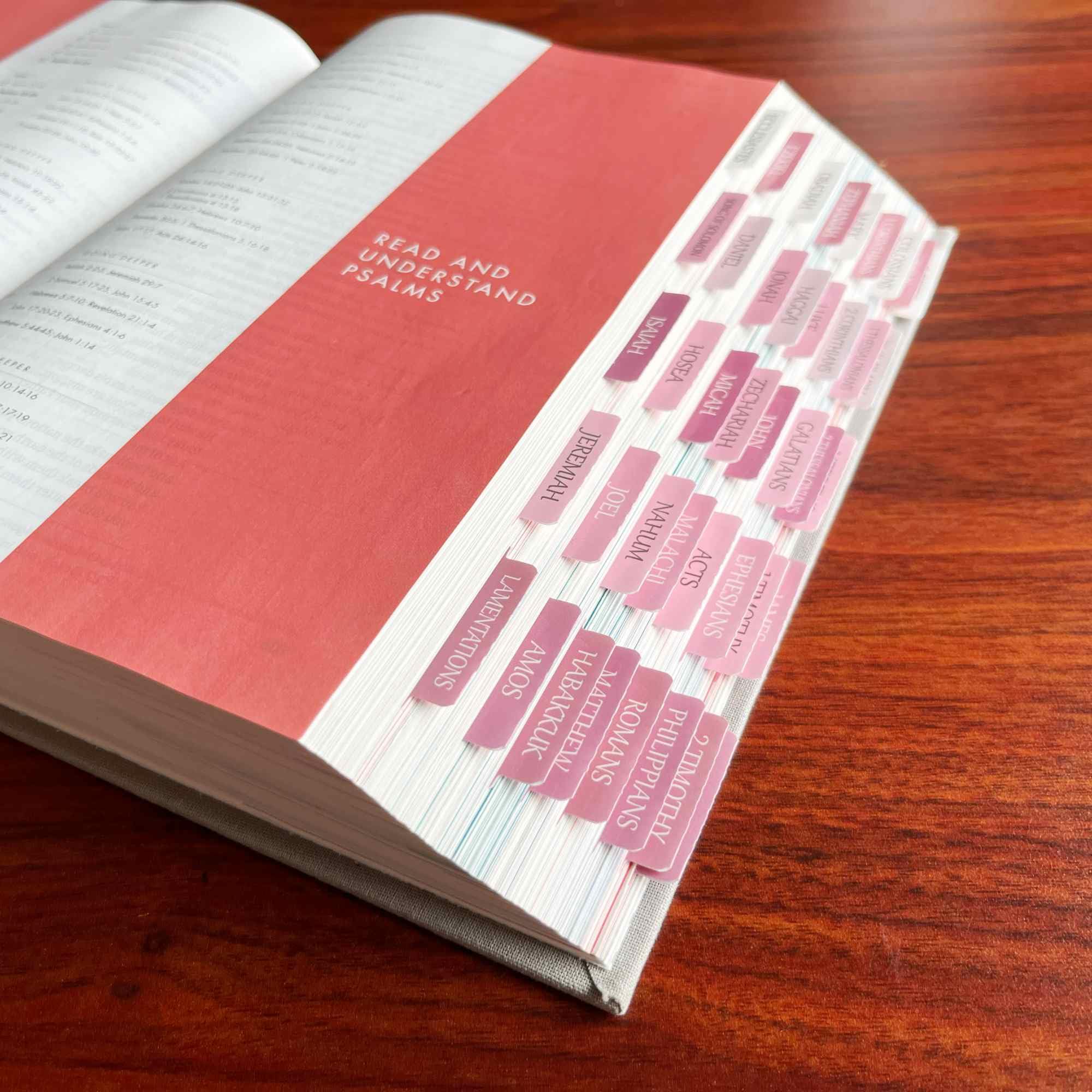 [Reposition Technology] Thinkor bible tabs are made of latest materials. If you accidentally attached one to the wrong page, you are able to carefully remove it without damage to the page and reattach it to the correct page.