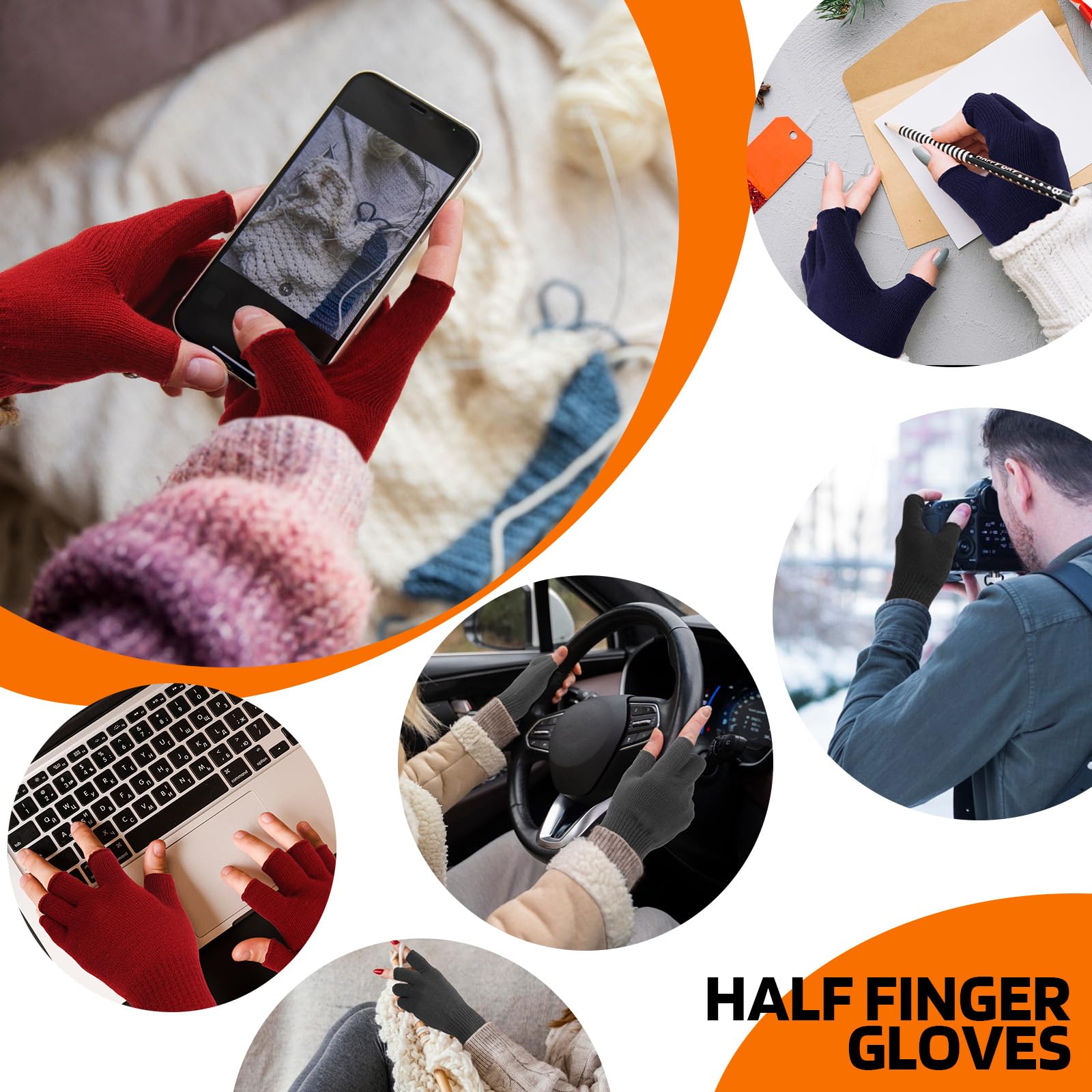 Description Warm Half Finger Gloves: these gloves are knitted with acrylic fabrics; they are soft, warm and comfortable to wear, comfortable to touch, friendly to skin, which has good warm performance and easily brings you warmth in winter making you want to wear them all day long. The material is durable enough, better to be washed by hand. The warm fingerless winter gloves can be used indoors or outdoors, such as cycling, driving, using computer or mobile phone, typing, writing, working, learning, climbing, running, hiking, jogging, etc. Finger Flexibility: the half finger design of the gloves allows you to keep your hands warm and release your fingers at the same time, so that you can keep your fingers flexible when working, answering the phone, exercising and typing. It can protect your hands from freezing while playing on the phone or typing in front of the computer. It is suitable for a variety of electronic touch screen devices, which is more convenient to a certain extent. Suitable for schools, offices, etc. Unisex Design: classic shape, fingerless glove design suitable for men and women, you can use fingers effortlessly, retractable, standard size, suitable for large and small hands, easily suitable for most people. can be used indoor or outdoor, such as taking notes, cycling, using computer or smartphone, outdoor sports, easy to use One Size Fits All: the knitted gloves measure approx. 18 cm/ 7 inches in length, 12 cm/ 4.7inches in width, comfortable for your wear. These gloves have good elasticity, stretch well and fit your hands well, so they are suitable for most men, women and teenagers; Winter knitted gloves with half-finger design, not only keep warm, but also bring you convenience in some occasions. Great Gift Idea: A variety of colors to choose from and to meet your daily wear and replacement; these thickened and warm half finger gloves are good gifts for friends and family when the weather gets colder. Solid color, without any patterns on the surface, unisex gloves, a nice gift for both girls and boys. An excellent gift to excite your families and friends, and keep them warm in the frozen winter