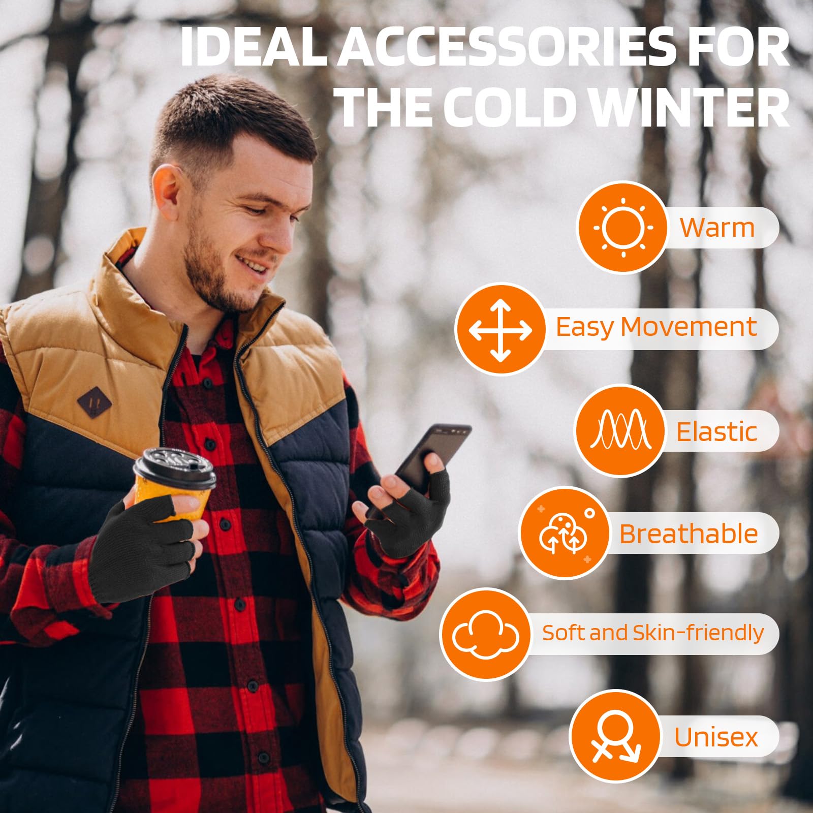 Finger Flexibility: the half finger design of the gloves allows you to keep your hands warm and release your fingers at the same time, so that you can keep your fingers flexible when working, answering the phone, exercising and typing. It can protect your hands from freezing while playing on the phone or typing in front of the computer. It is suitable for a variety of electronic touch screen devices, which is more convenient to a certain extent. Suitable for schools, offices, etc