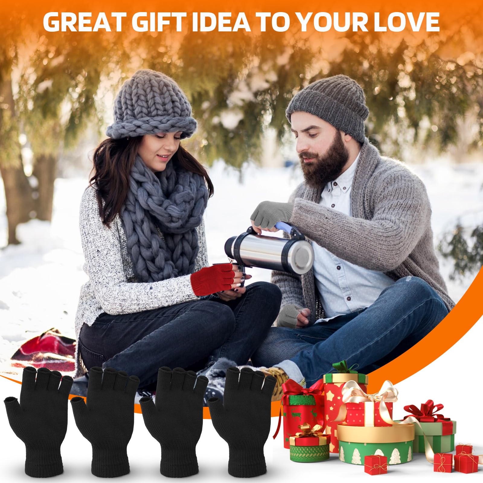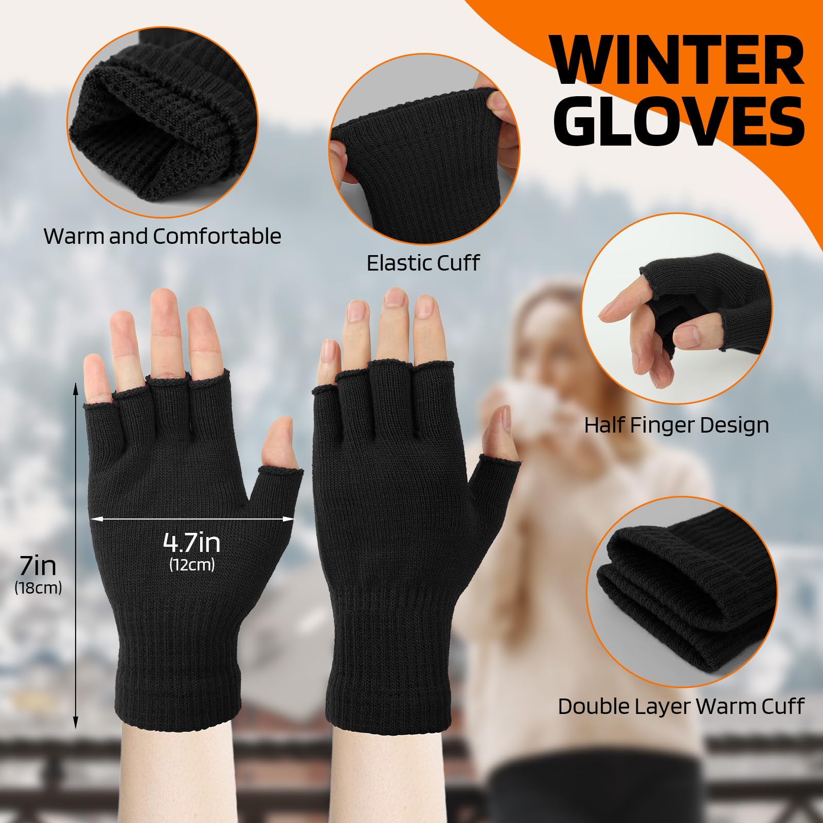 One Size Fits All: the knitted gloves measure approx. 18 cm/ 7 inches in length, 12 cm/ 4.7inches in width, comfortable for your wear. These gloves have good elasticity, stretch well and fit your hands well, so they are suitable for most men, women and teenagers; Winter knitted gloves with half-finger design, not only keep warm, but also bring you convenience in some occasions