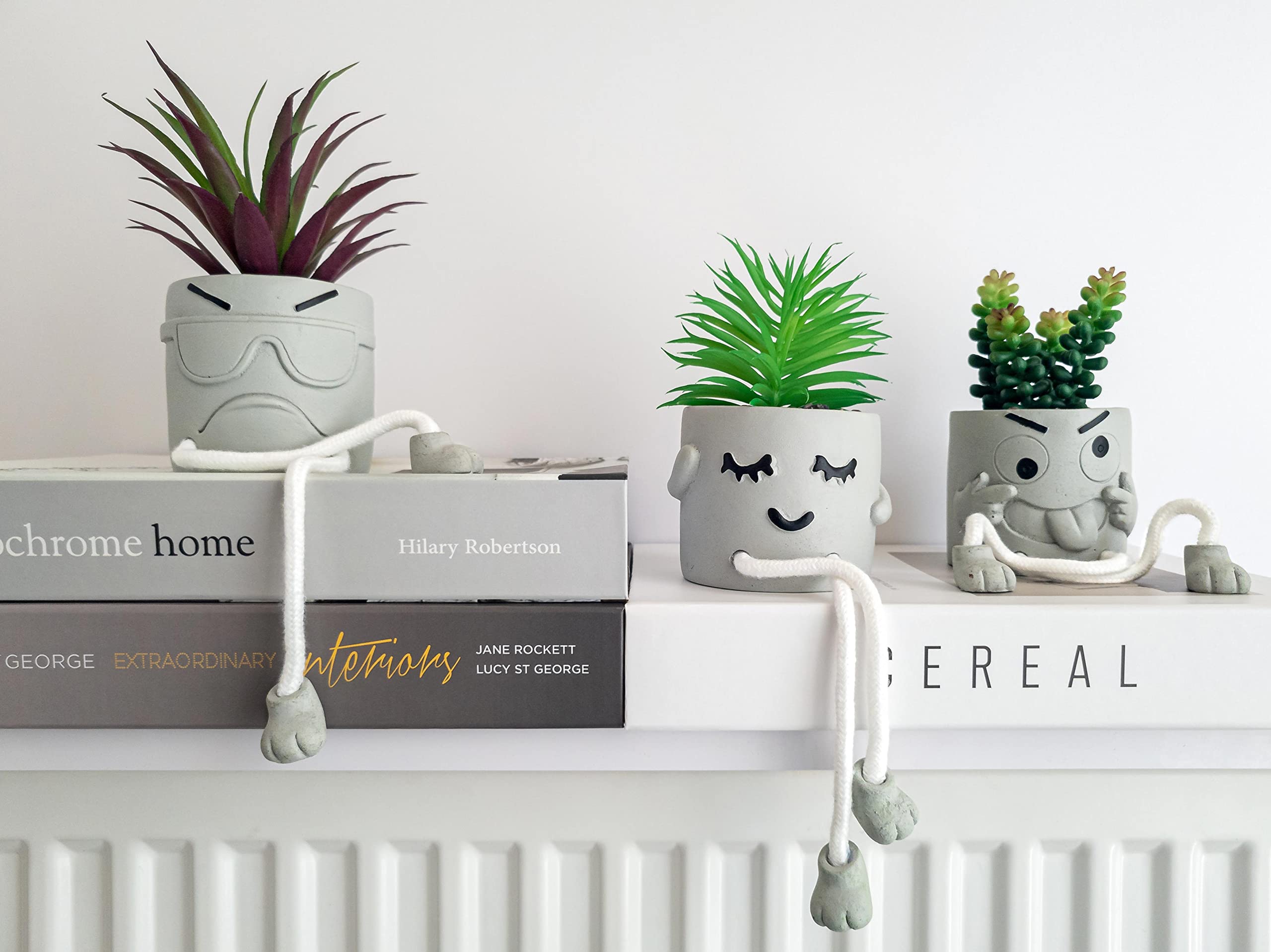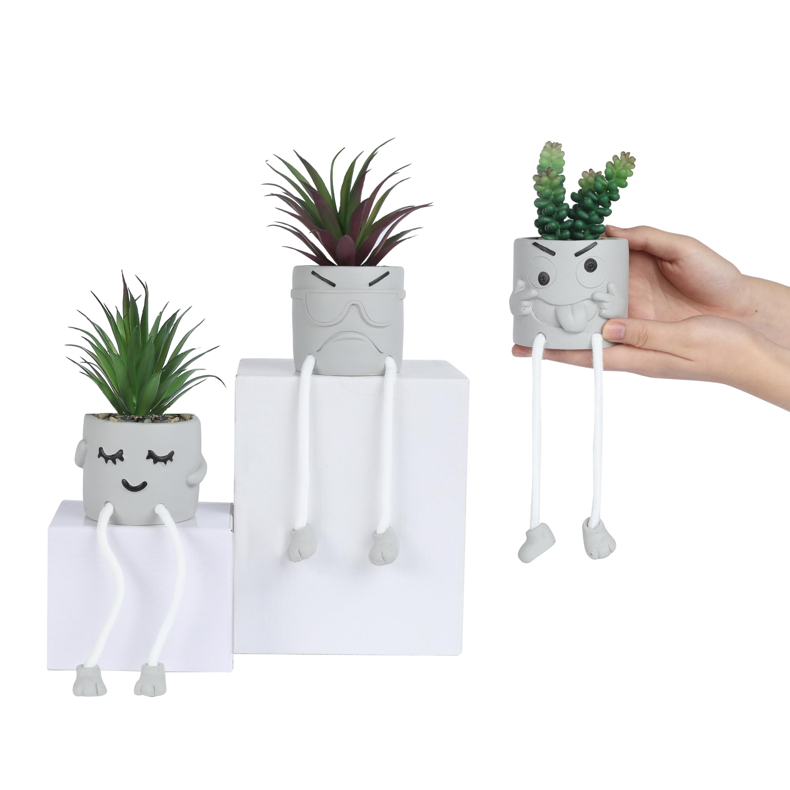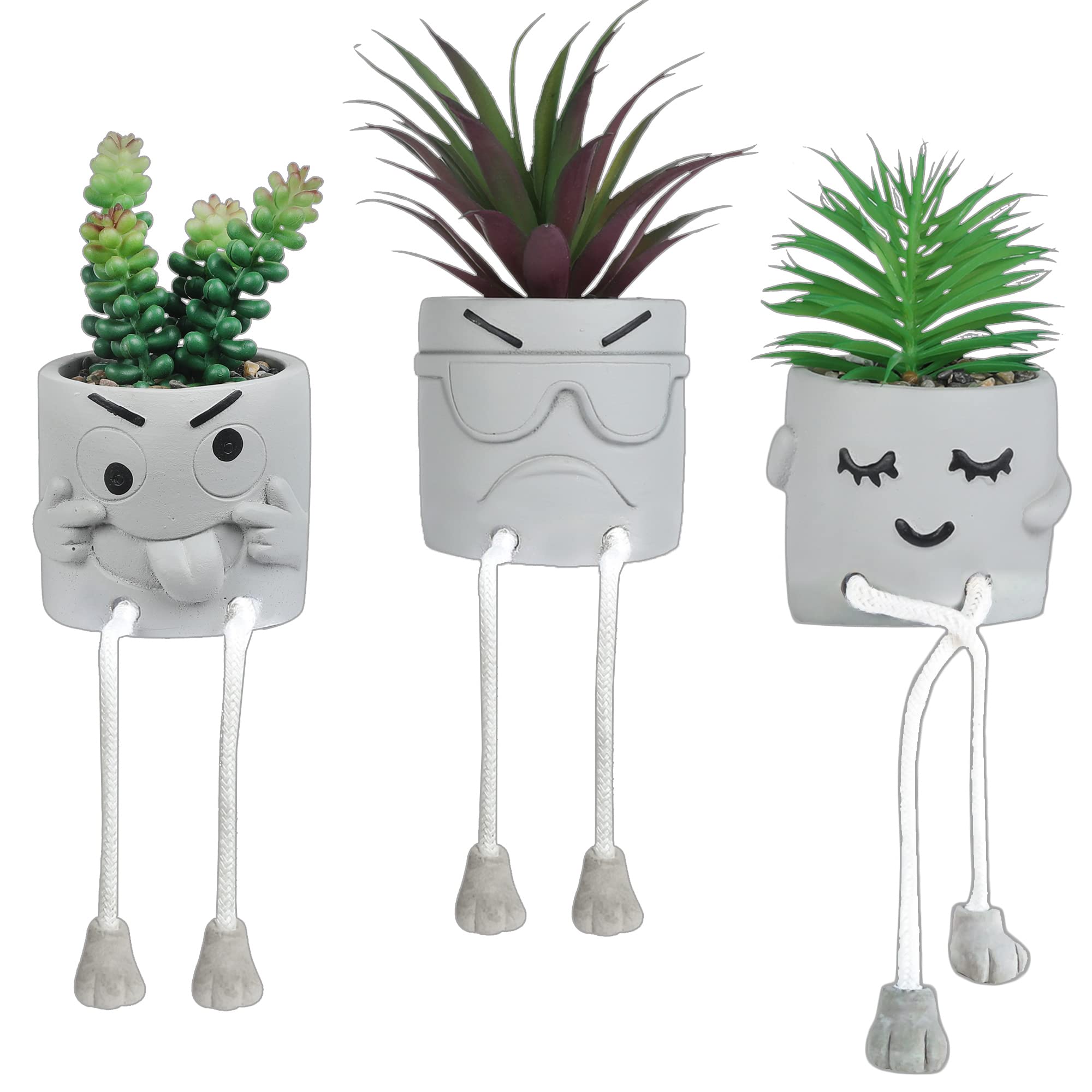 ALL SMIRKS AND SMILES: These personality succulents plants artificial will become more than just your plant. Their cheery appearance will brighten up Decor . With 3 quirky designs to choose from