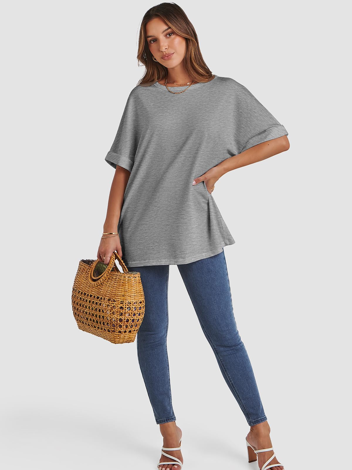 Features: Plus Size,Casual Crew Neck, Rolled Sleeves Design-Adds a Nice Little Details to the Simple Tee, Plain Basic T Shirts. Perfect to Wear in all Seasons.