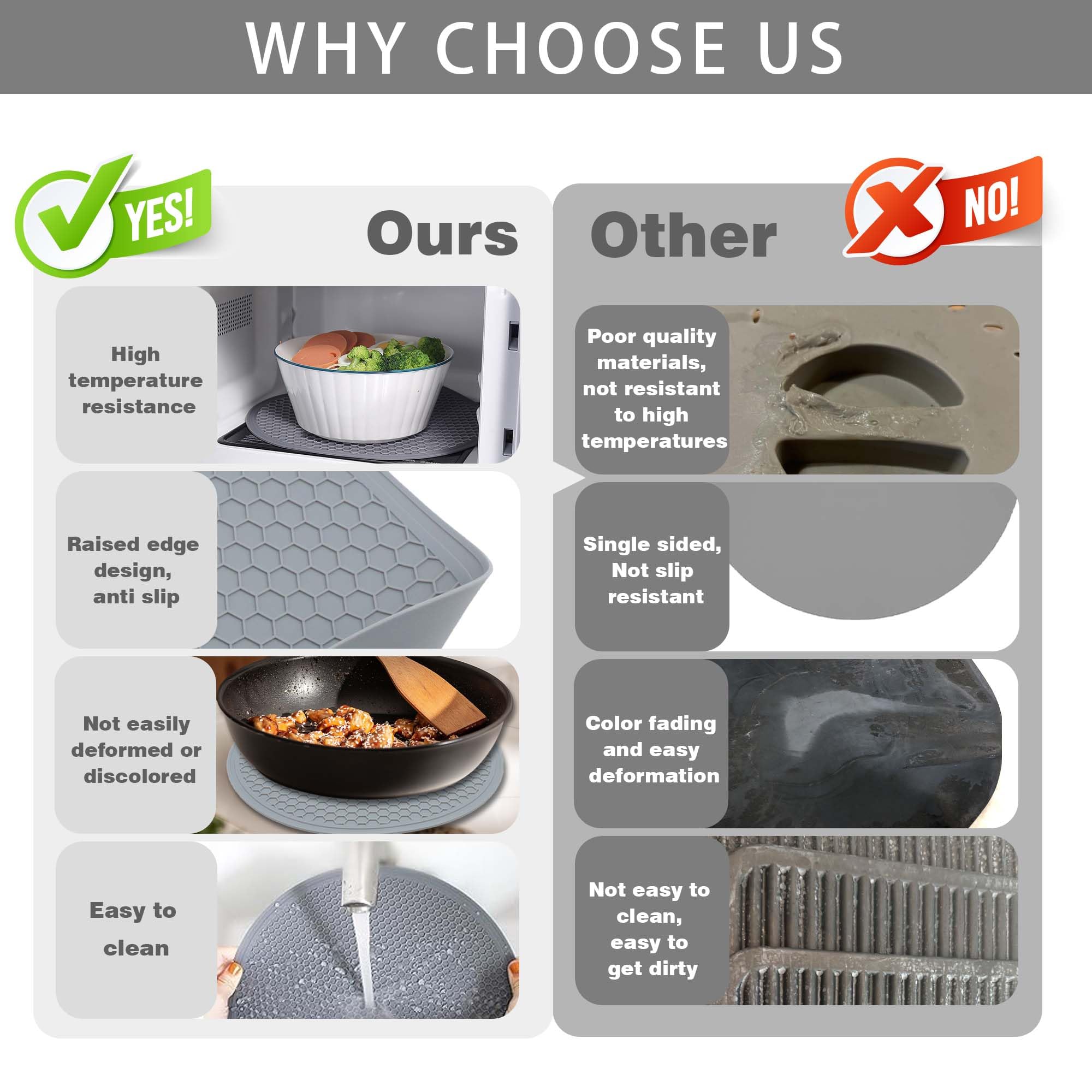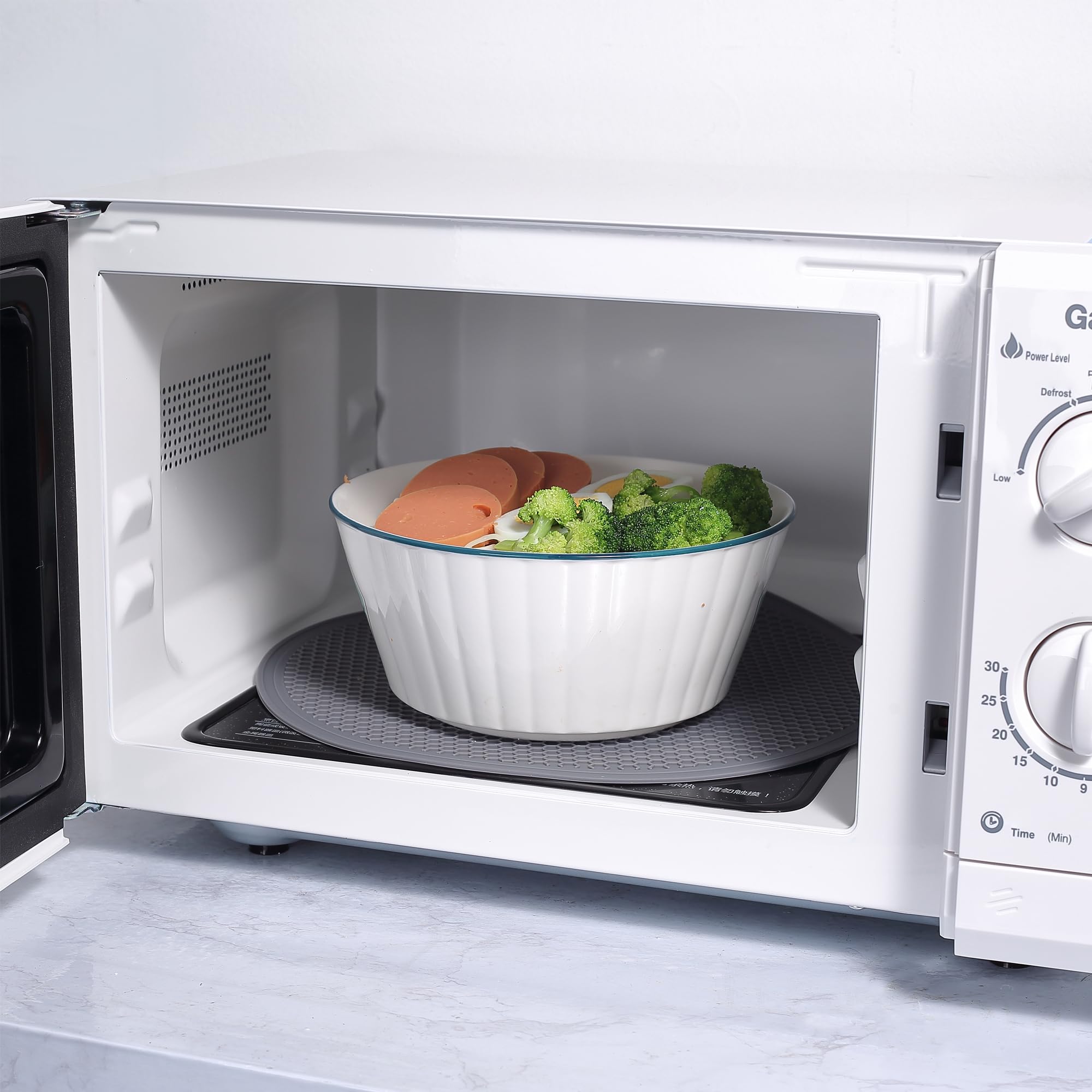 Stylish Design, raised grooves and edges for easy grabbing and even heat distribution. They are designed to contain spills, drips and splatters, protecting your glass microwave turntable.