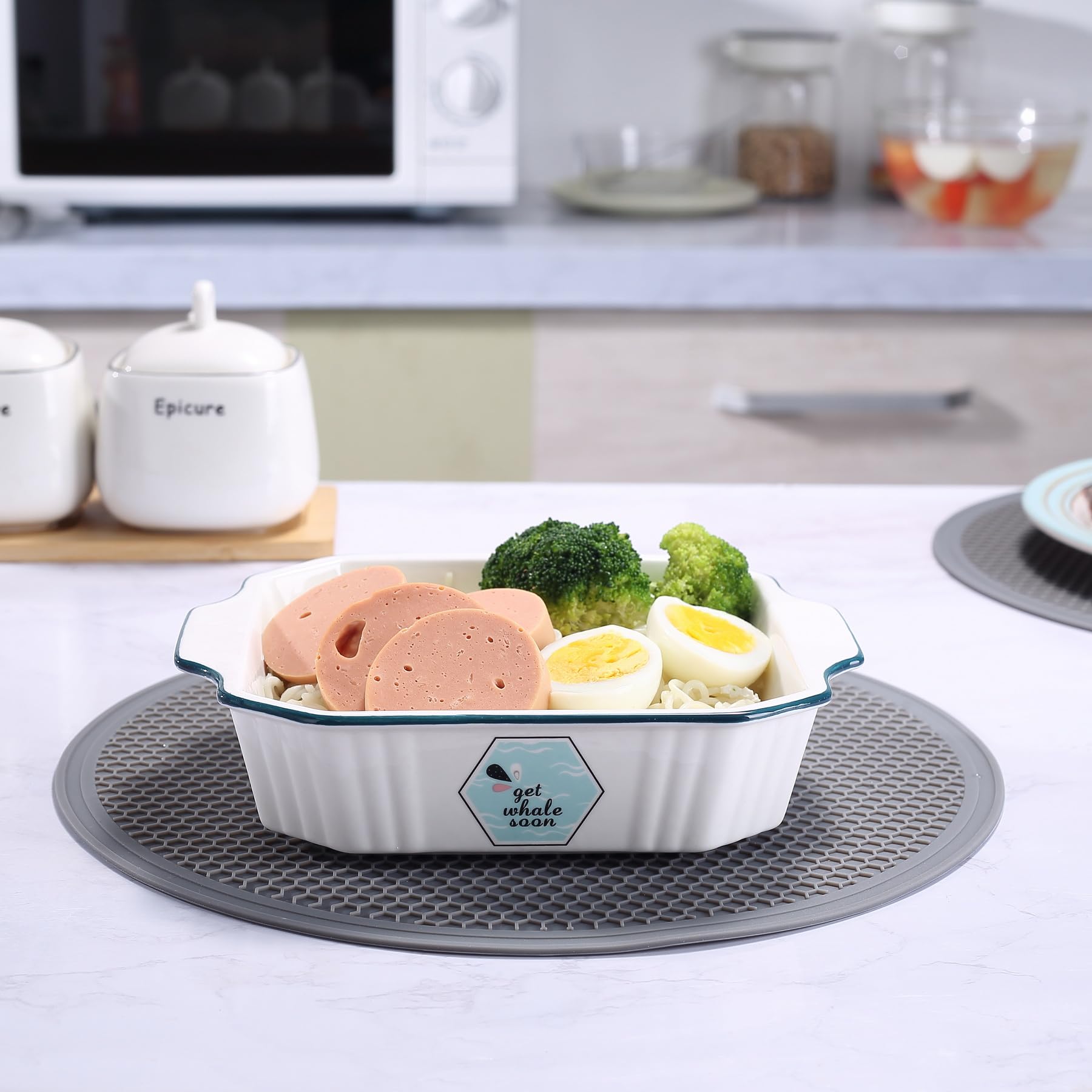 Multi-Functional Mat, can be applied to microwave heating, oven baked. It can also be used as a drying mat, jar opener, trivet, utensil rest, place mat and more. Covers most dishes for reheating.