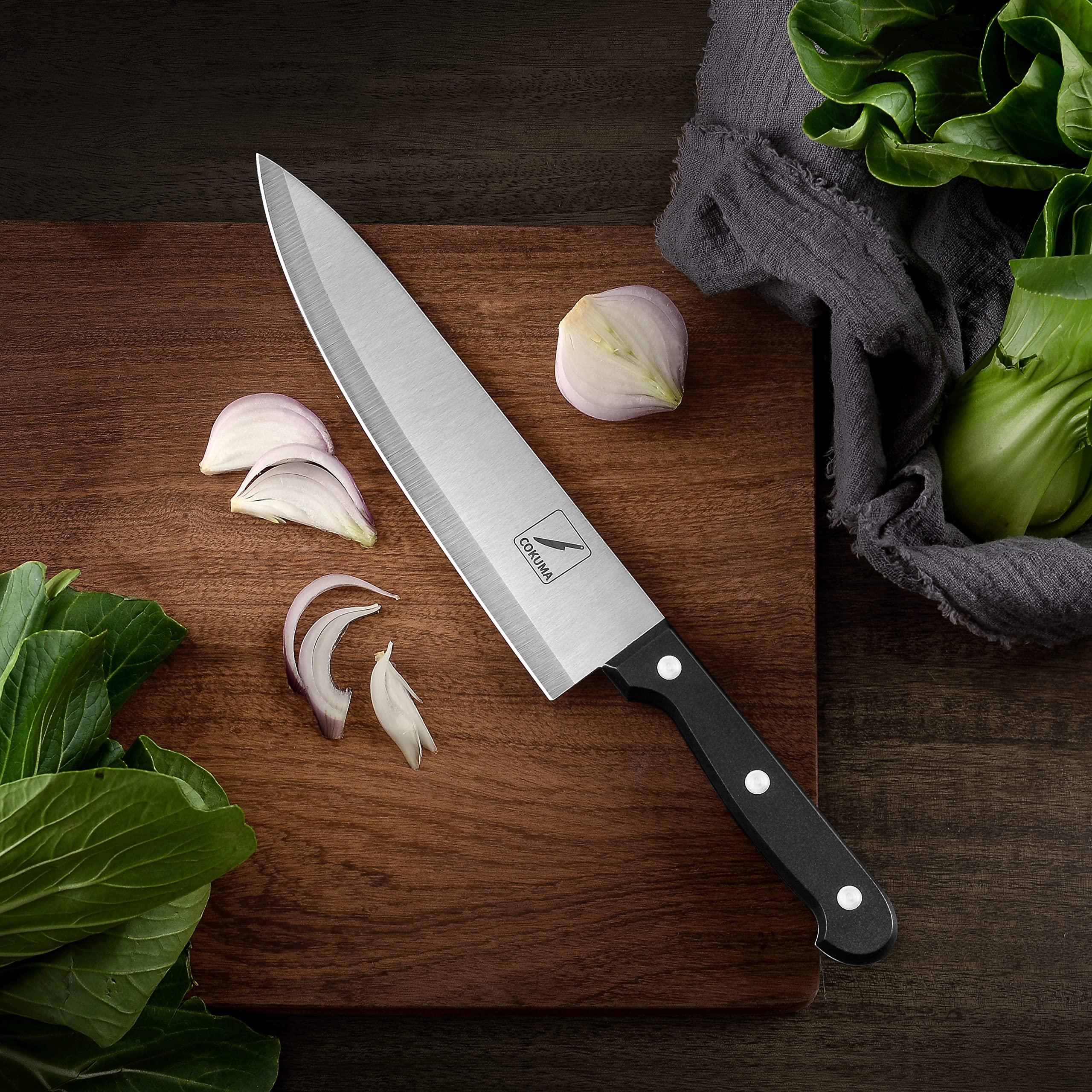 2. Kitchen Knife Set Includes: 8 Inch Chef Knife, 4.5 Inch Utility, 4 Inch Paring Knife and three matching knife sheath. It can be used for your daily kitchen tasks of chopping, slicing, dicing and mincing of all kinds of meat, vegetables, fruits and bread. It is suitable for both home and restaurant kitchens.