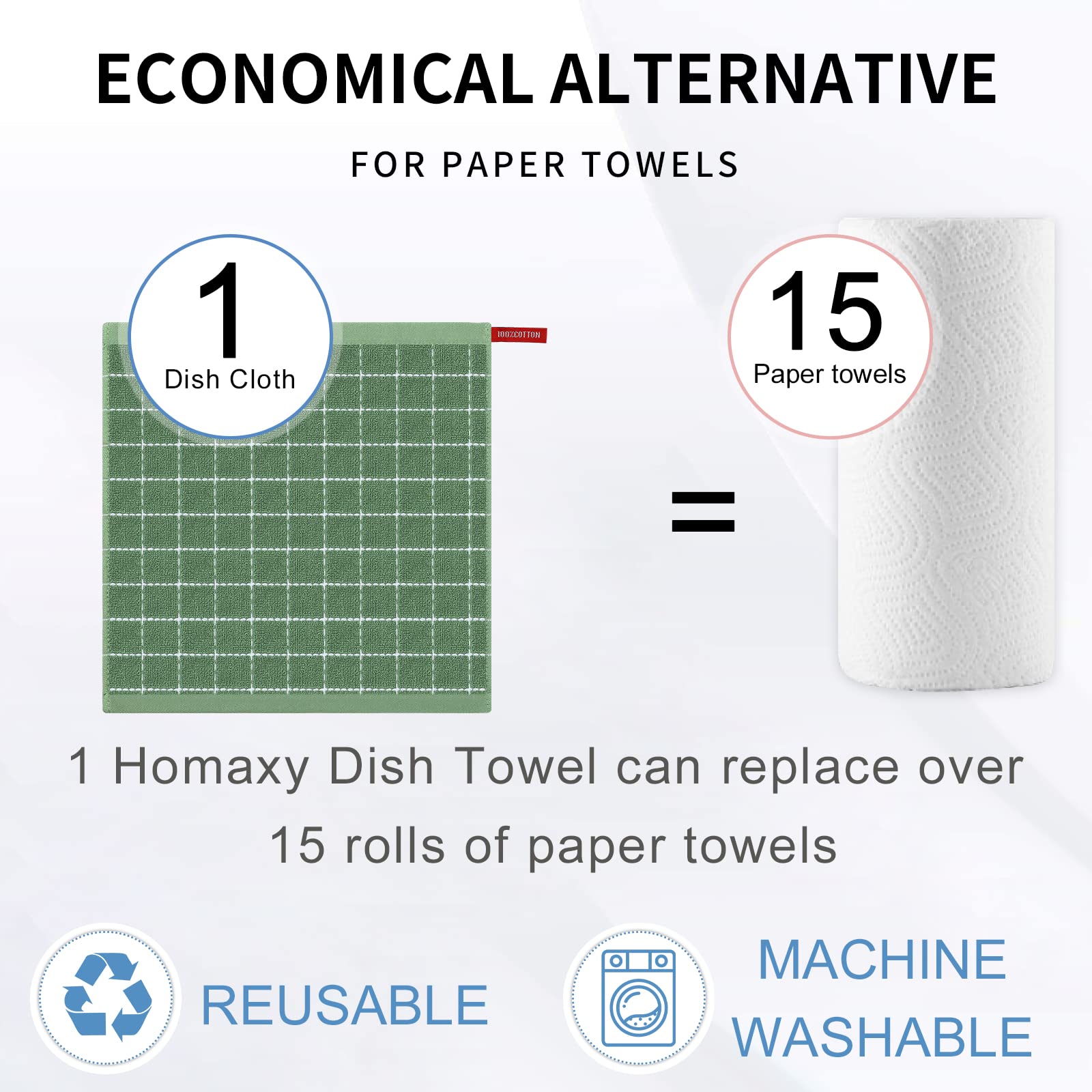 Super Absorbent: These dish cloths are designed with upgraded terry structure, are lightweight, highly absorbent, and dry quickly. They can easily absorb plenty of liquid or wipe oil stains