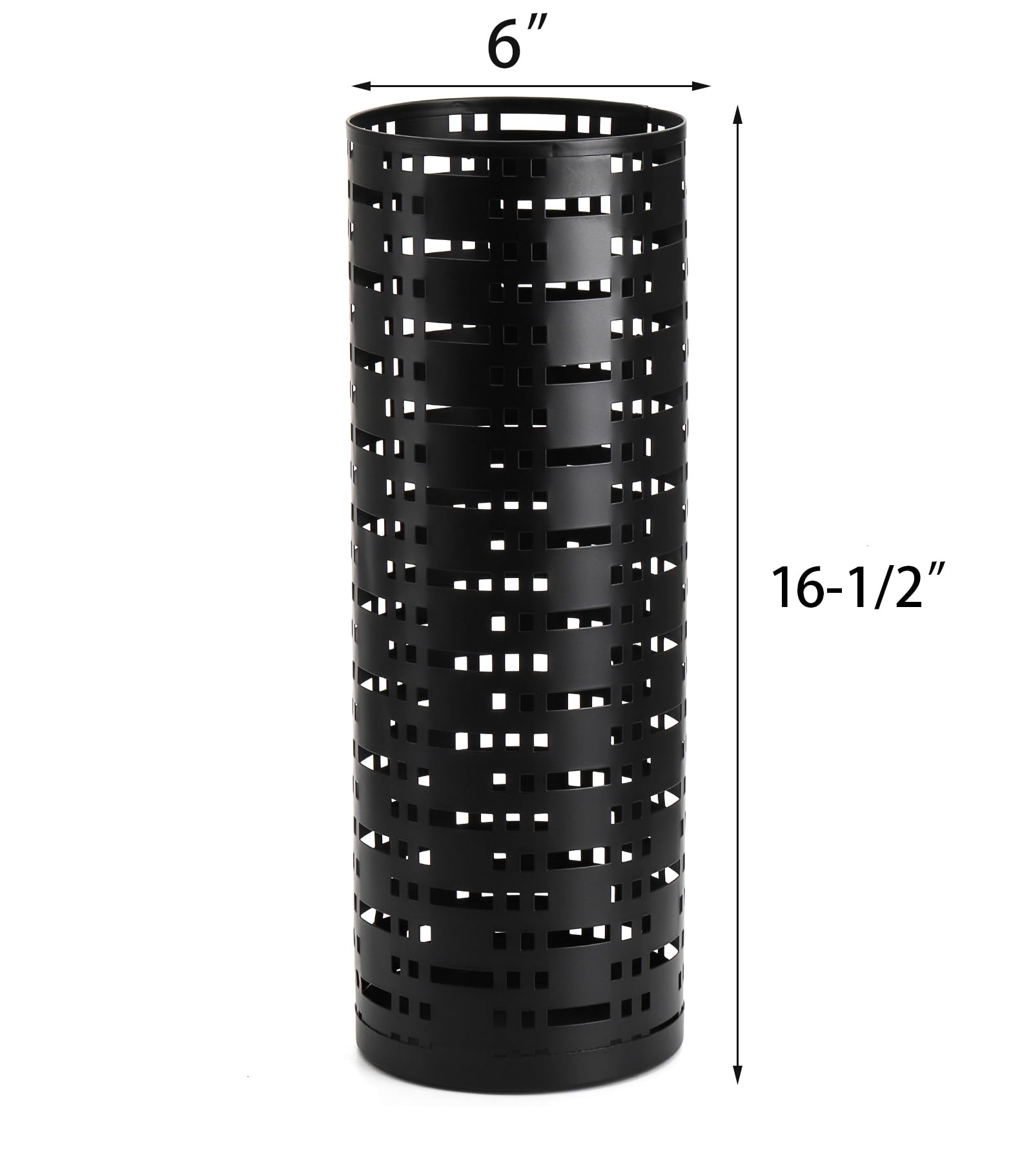 This iron umbrella bin measures 16.5 x 6 inch, accommodates eight to ten tall umbrellas. slim and compact size will not take up too much space.