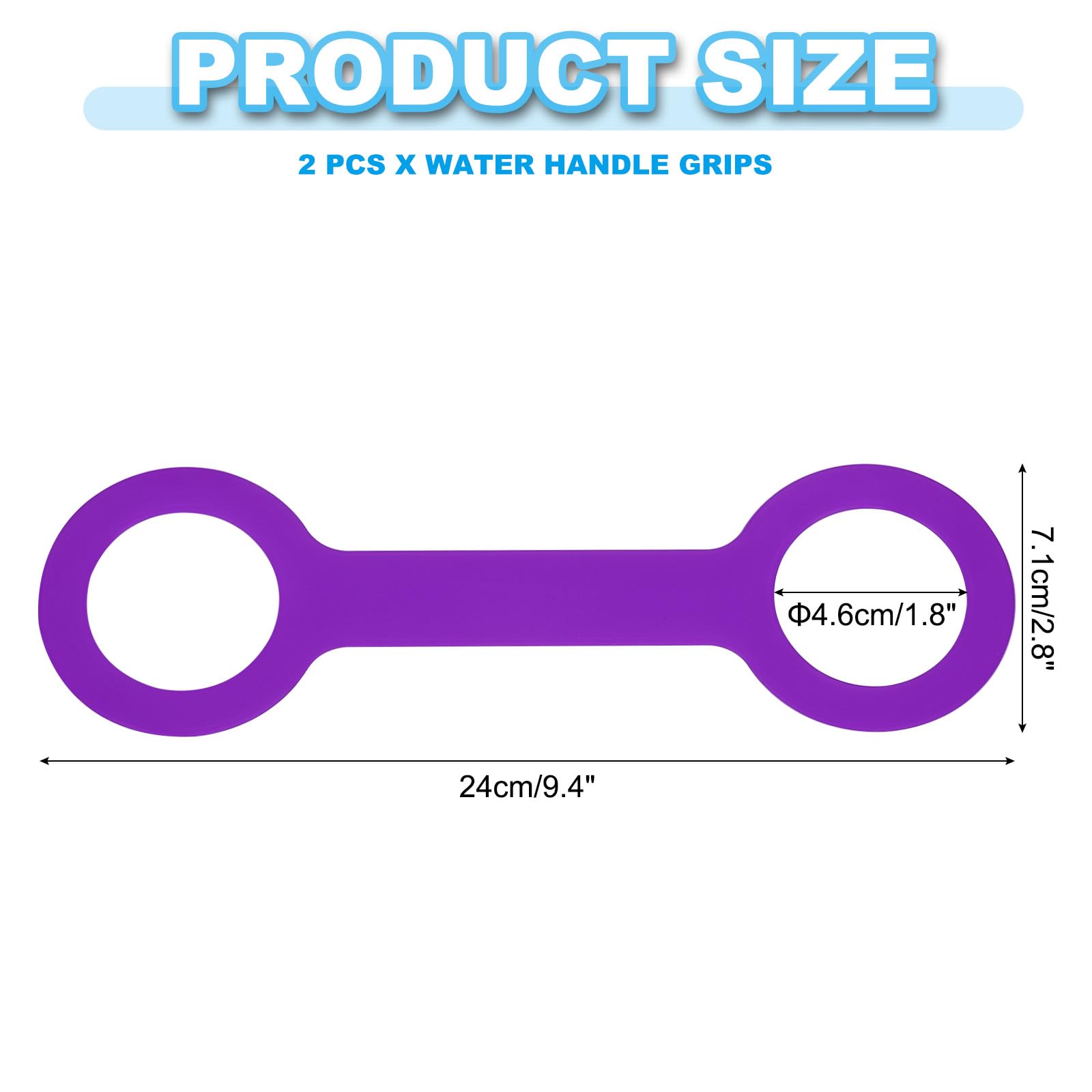 Specification: Material: Silicone; Color: Purple; Inner Diameter: 4.6cm/1.8 Inch; Outer Diameter: 7.1cm/2.8 Inch; Length: 24cm/9.4 Inch; Thickness: 3mm/0.12 Inch; Suitable for 500ml to 1000 ml cup; Packing List: 2 Pcs x Water Handle Grips