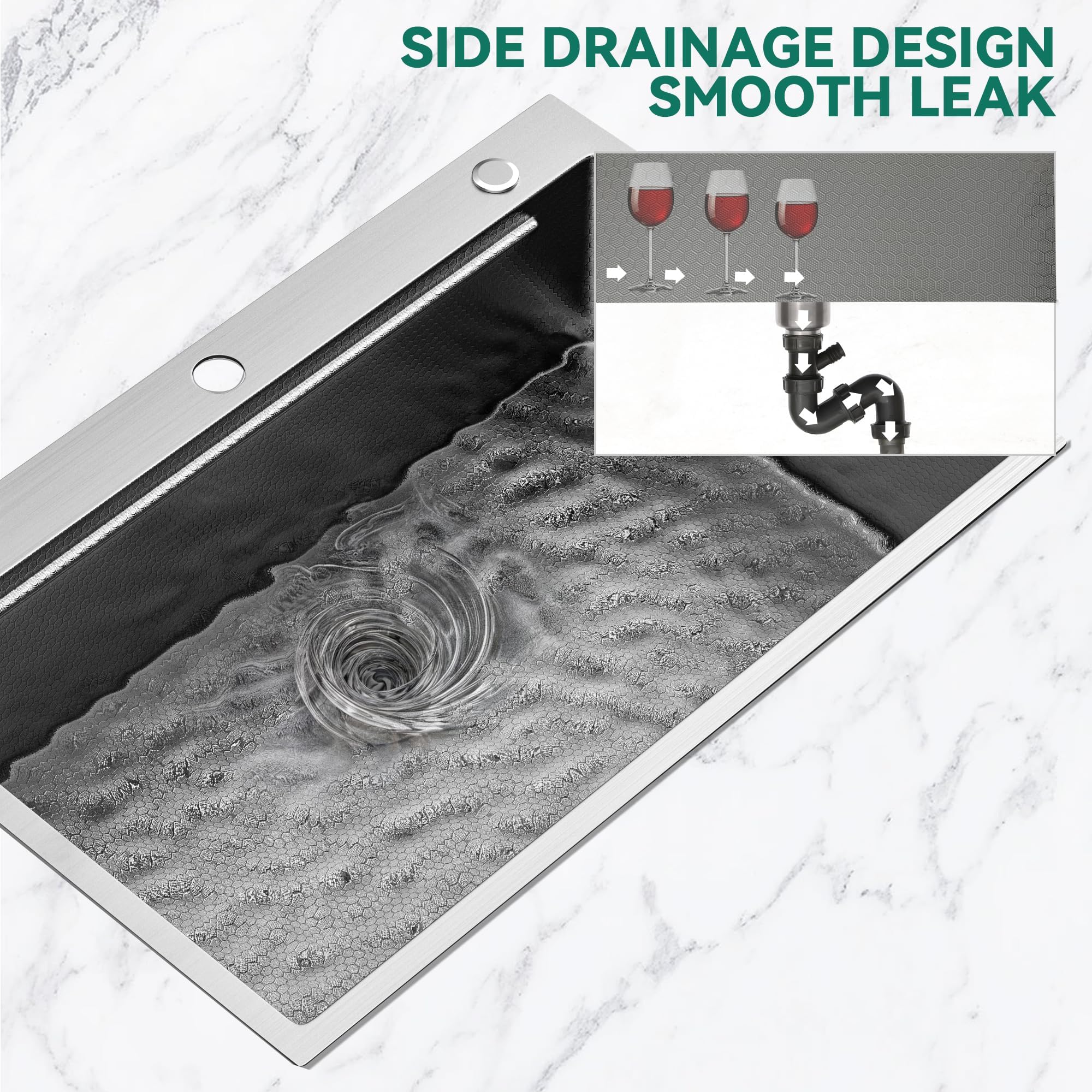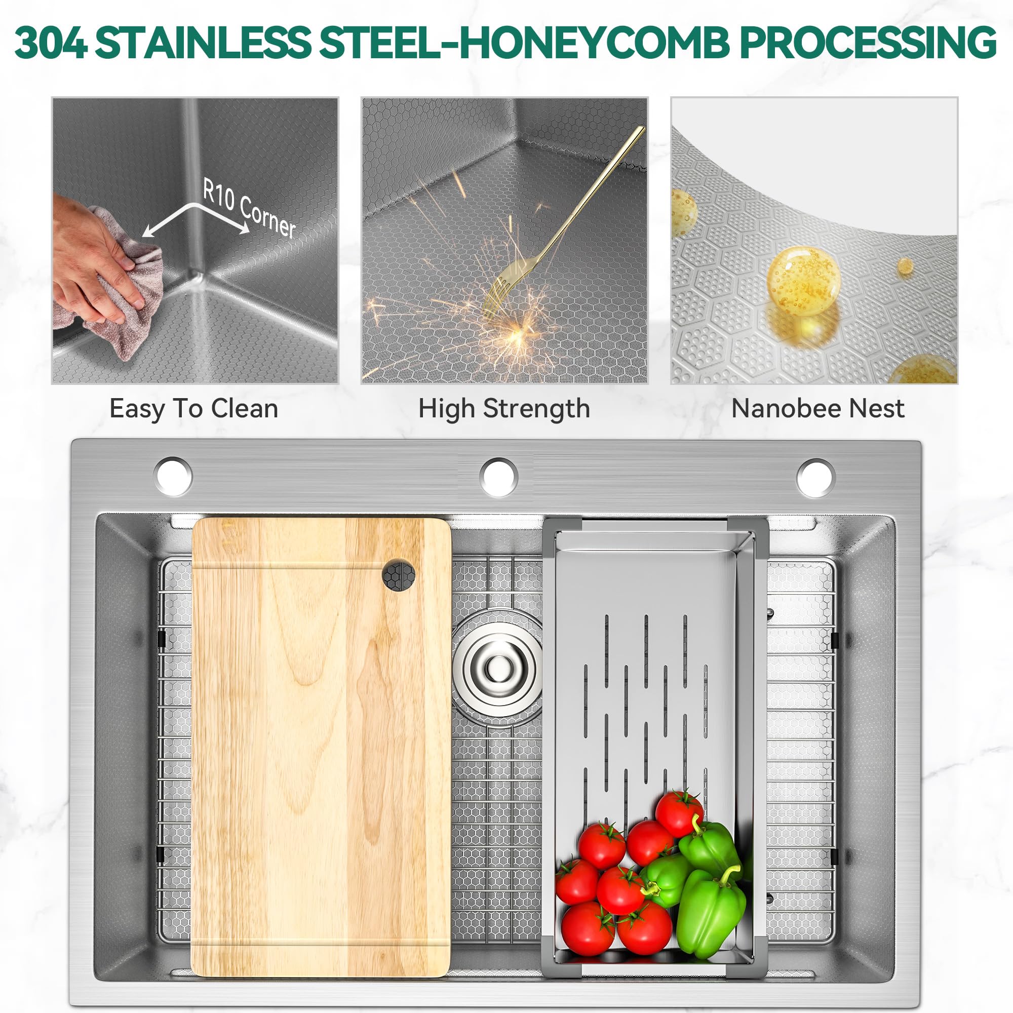 Honeycomb Surface Protection: Crafted from sturdy 304 stainless steel with a chic honeycomb embossed pattern, this drop in deep sink resists scratches, corrosion, and fingerprints; A spotless, modern kitchen centerpiece that shines through every meal prep