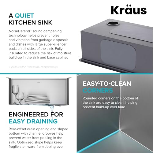 SMOOTH SATIN FINISH is easy to keep clean and not prone to corrosion – Gently rounded corners on the bottom of the stainless steel kitchen sink help reduce build-up –EASY DRAINING with sloped bottom and channel grooves to keep water from pooling