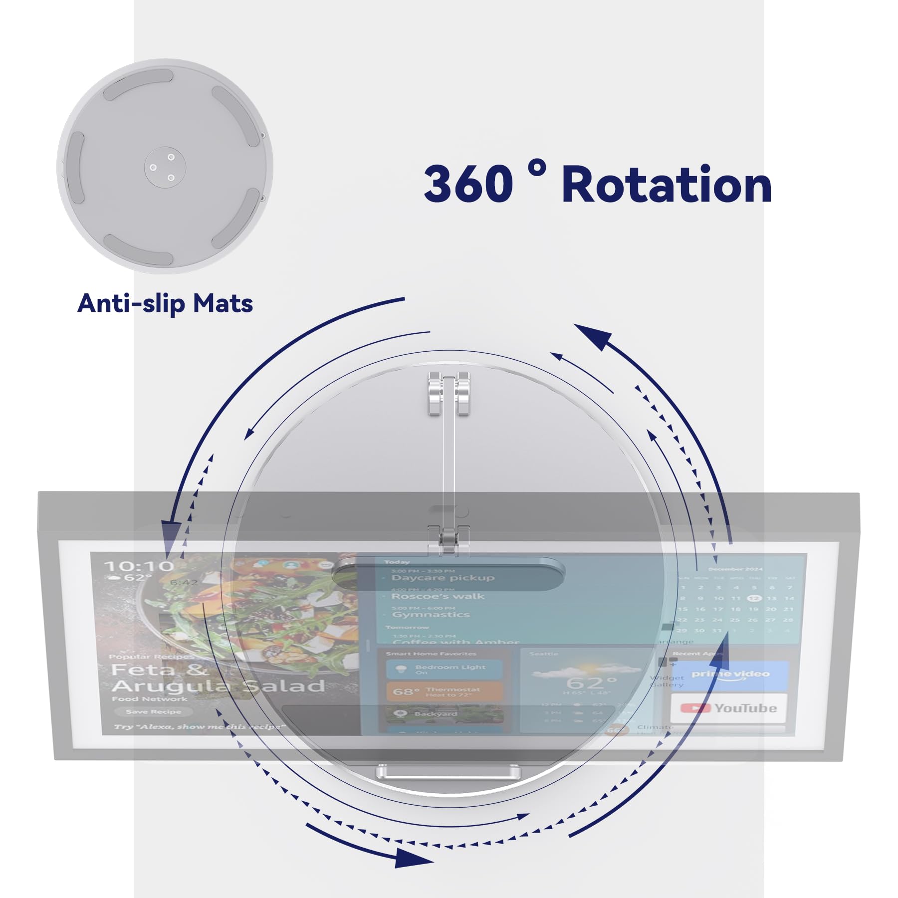 Base Rotatable: The echo show 15 stand has a swiveling base that allows for 360° rotation, enabling you to adjust the viewing angle smoothly. (Please note: The echo show 15 is not included.)