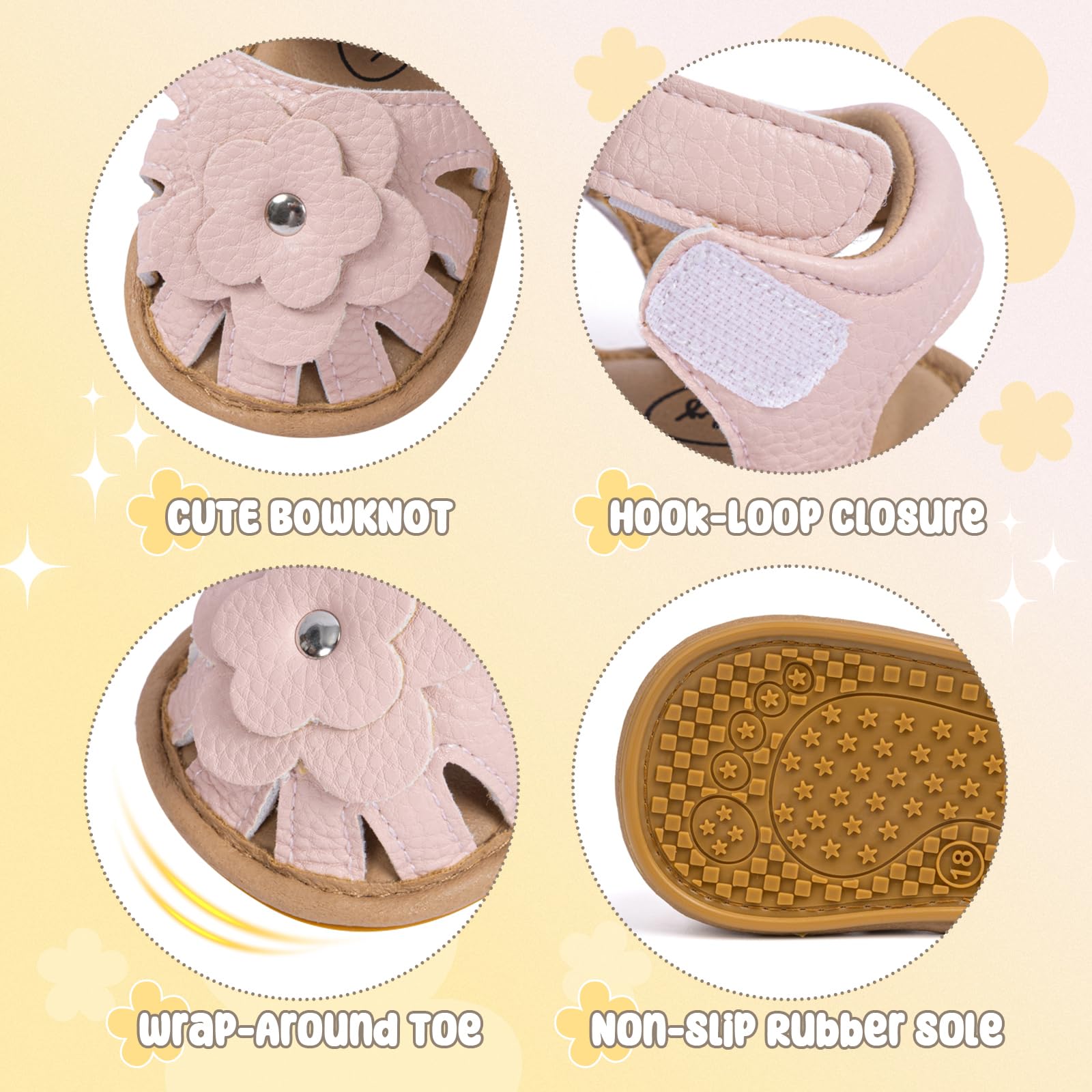 HOOK LOOP: Easy to put on, and easy off with hook loop closures on ankle strap, it can easily adjust the size and fit. Still stay on your baby’s feet