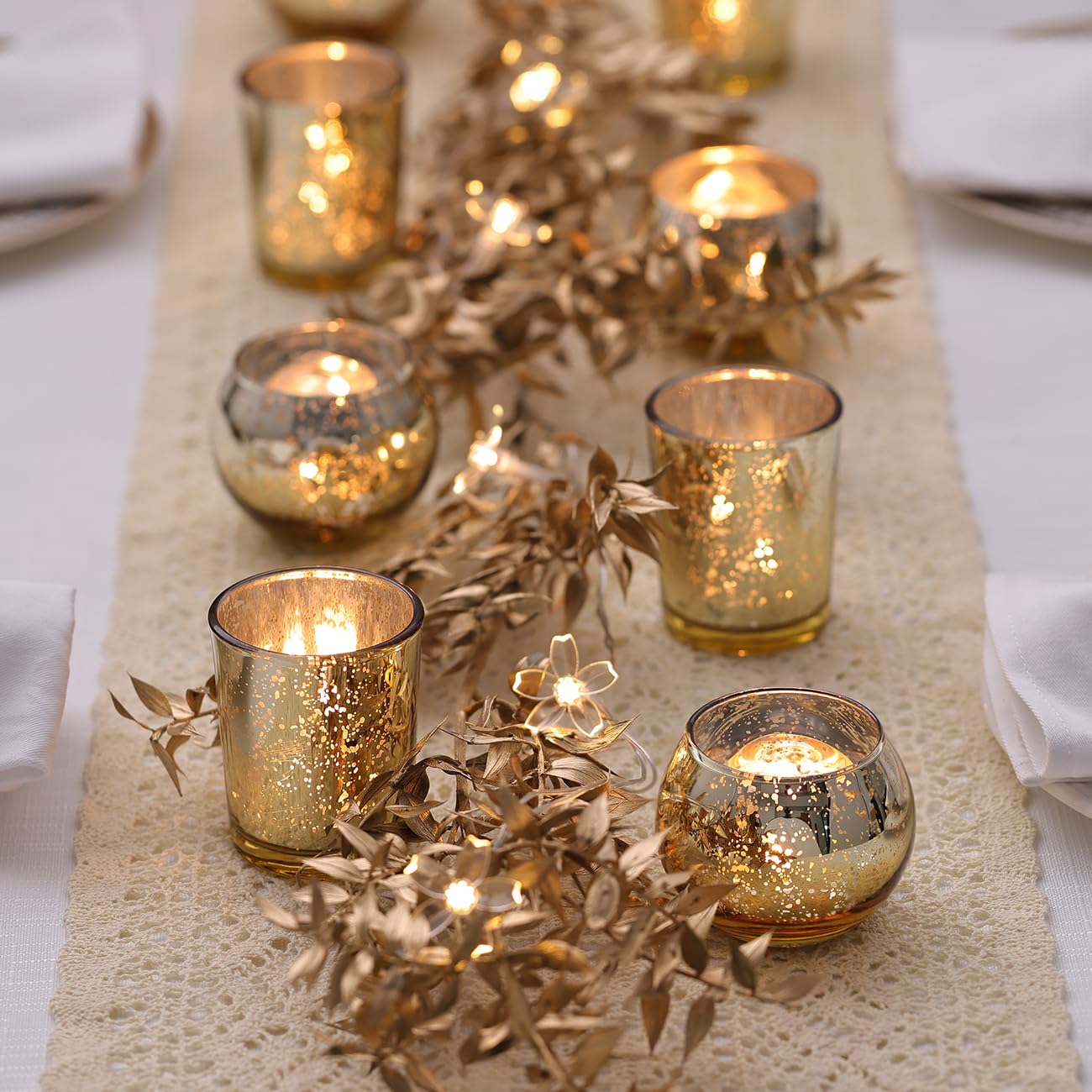 π MERCURY GLASS VOTIVES -- π Timeless look: The mercury gold coating is more firm and not easy to fall off, will add romance and warmth to any table setting.