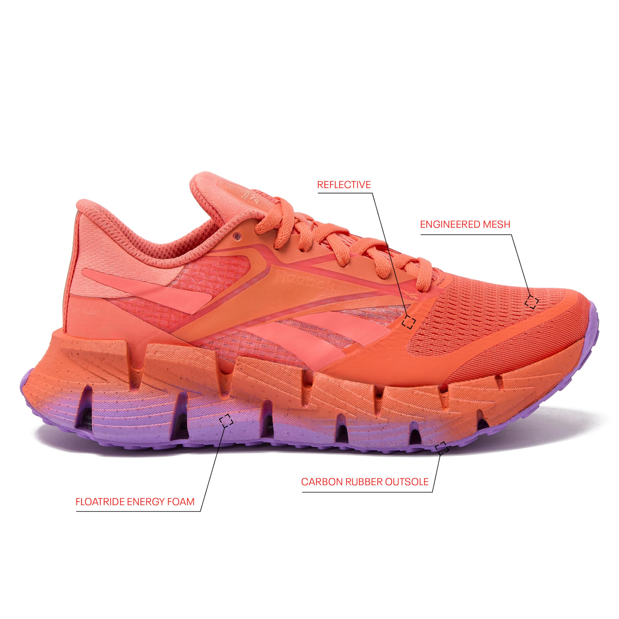 SIGNATURE REEBOK STYLE - The Floatzig 1 womens sneakers are designed to inspire everyone to lace up and get outside, for everyday running, walking, workout, and casual wear. Offered in black, white, and fashion colors.