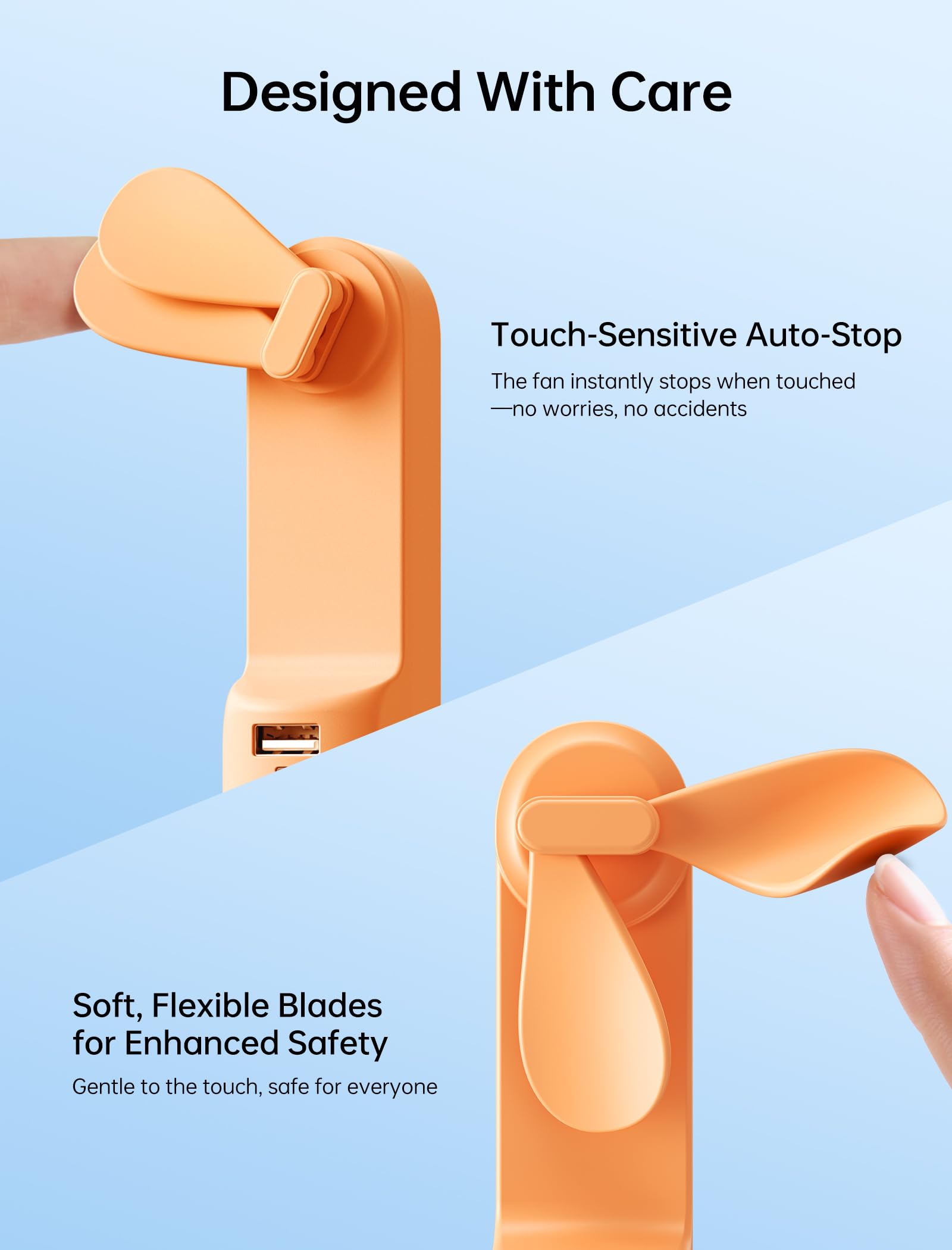 3-Stage Transformable Fan: 3-stage transformable design allows for easy storage with hidden blades, making it compact enough to carry in your pocket; Use it as a handheld fan at 180° fold or as a desktop fan at 270° fold for added versatility