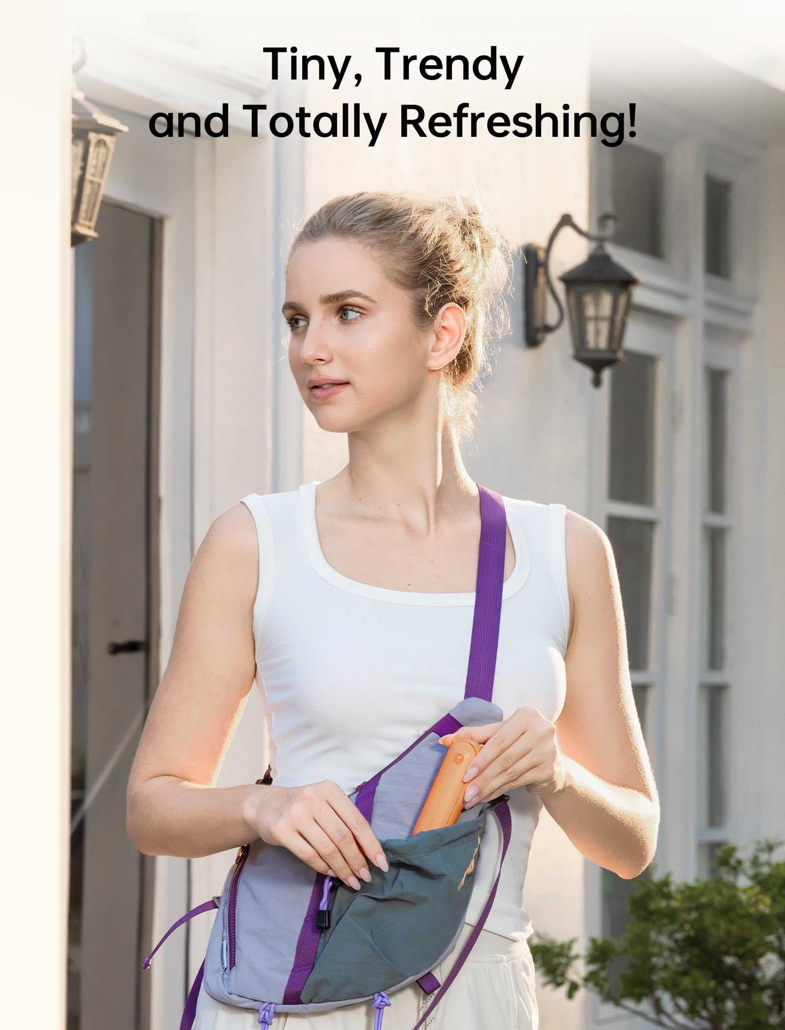 A Palm-sized Backup Charger: Designed with a pocket size, this portable fan easily fits into any bag for on-the-go convenience; Doubling as a backup power bank, it keeps your devices charged when needed, making it your travel and summer essentials