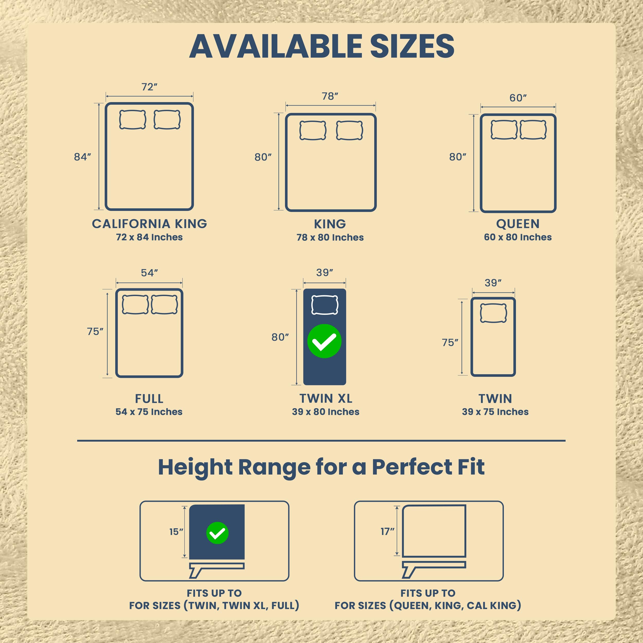 Mattress Protector - Fits Twin XL size mattress perfectly with dimensions 39 inches by 80 inches by 15 inches, featuring professionally turned hems and deep fitted pockets