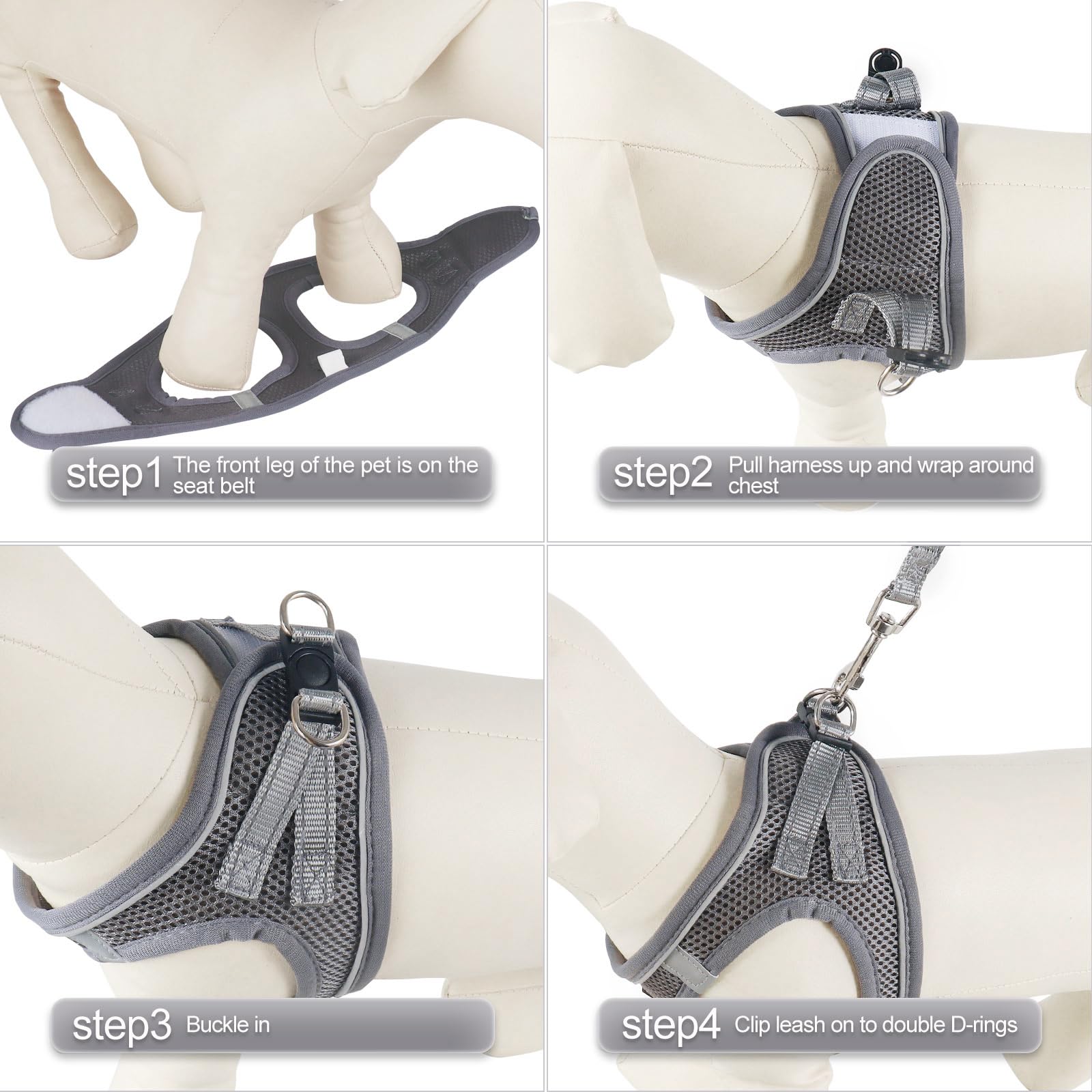 【Step-In Design, Simple】Effortlessly slip this harness on or off your pup in seconds, Step in, Clip&Go, so easy; Triple security features of strong closure, Double D-ring&Buckle ensures no accidental detachment
