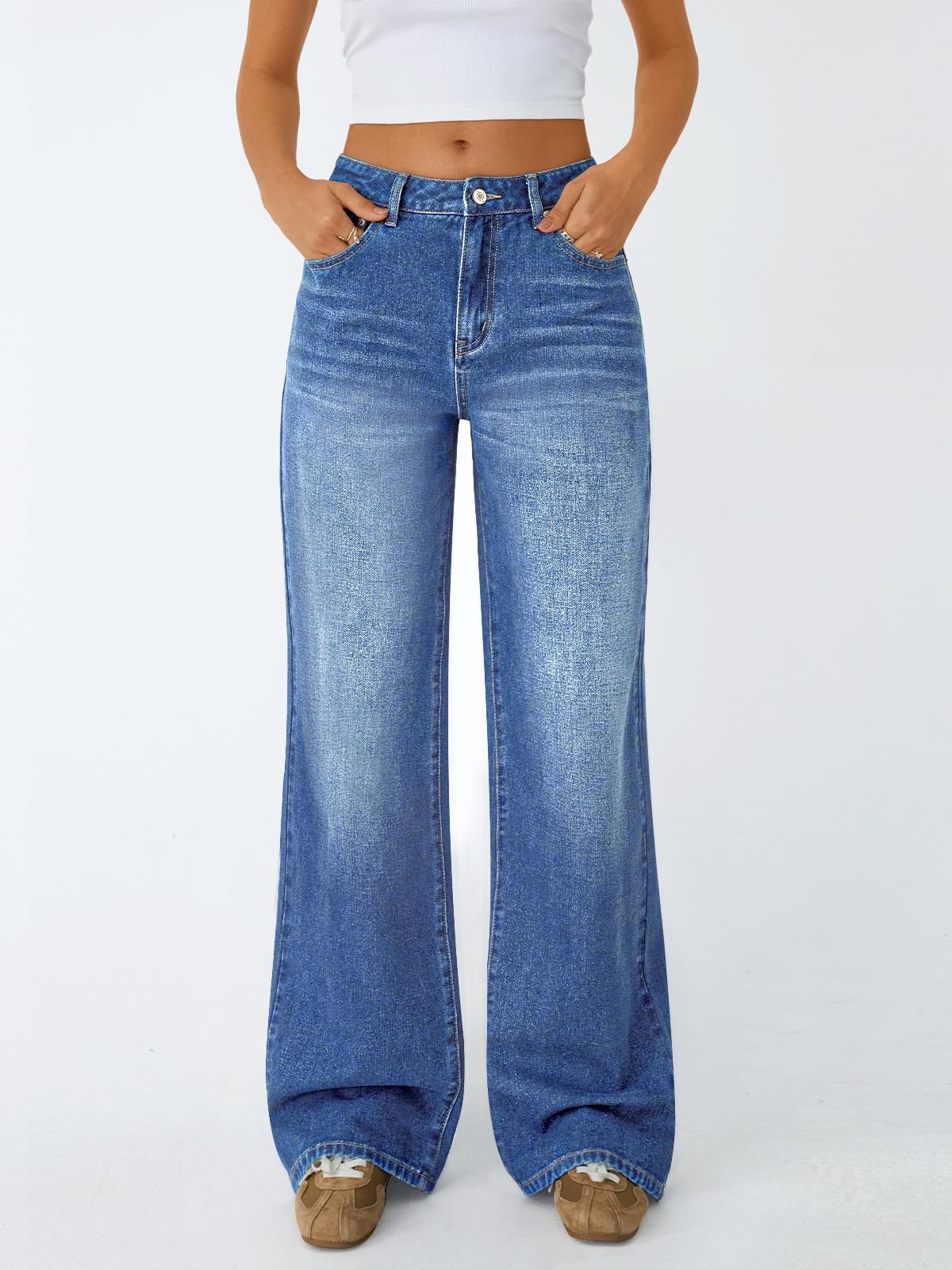 High Waisted Straight Leg Silhouette: The high-rise waist combined with a relaxed straight-leg cut flatters your waistline and legs. Classic button fly and functional front/back pockets create a simple, vintage-inspired casual style