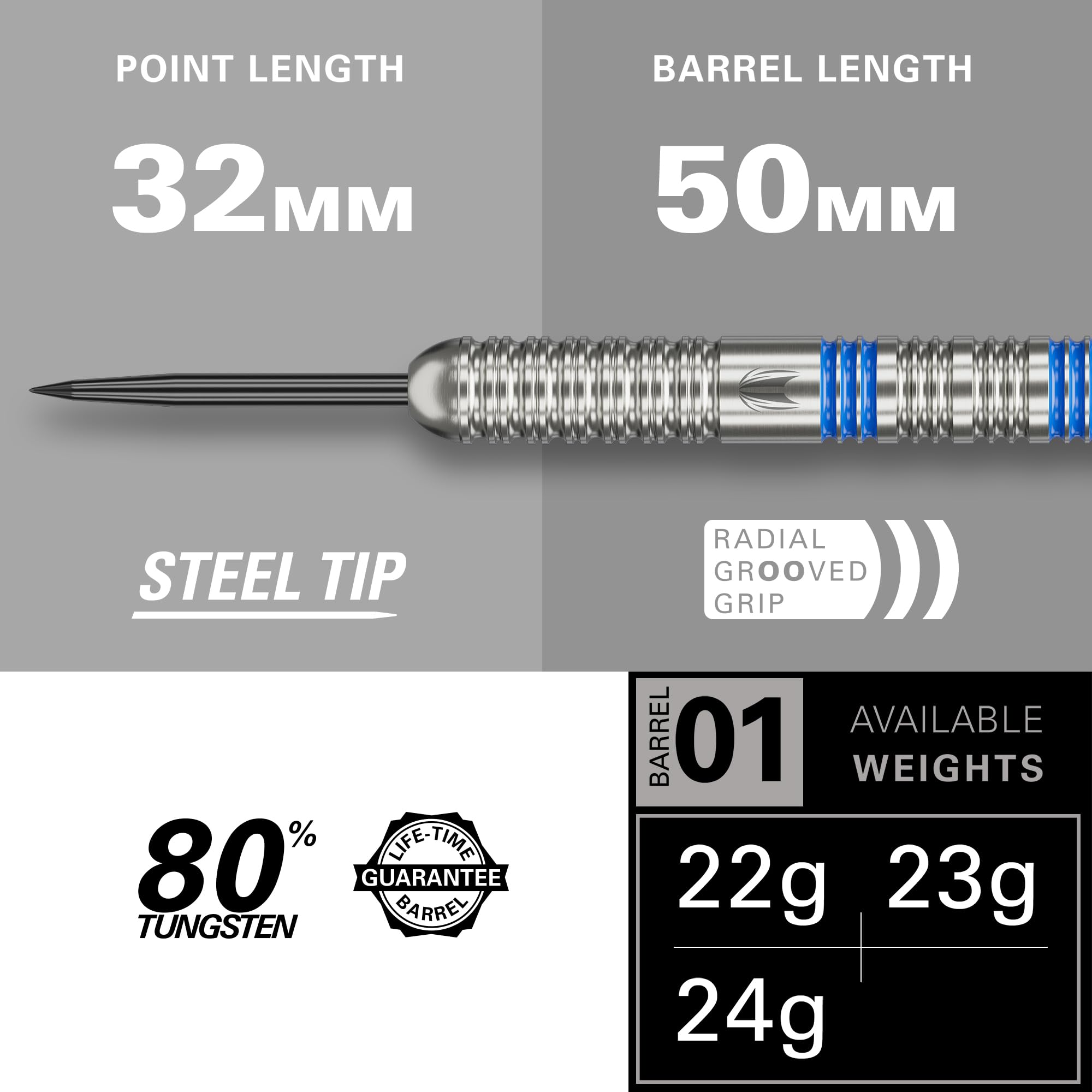 JOSH ROCK 80% TUNGSTEN DARTS SET: Introducing the Josh Rock 80% Tungsten steel tip darts, created in collaboration with the 2024 PDC Dutch Darts Championship winner and 2022 PDC World Youth Champion. The straight dart barrel features radial grooves for optimal finger grip, with fixed 26mm black nickel points.