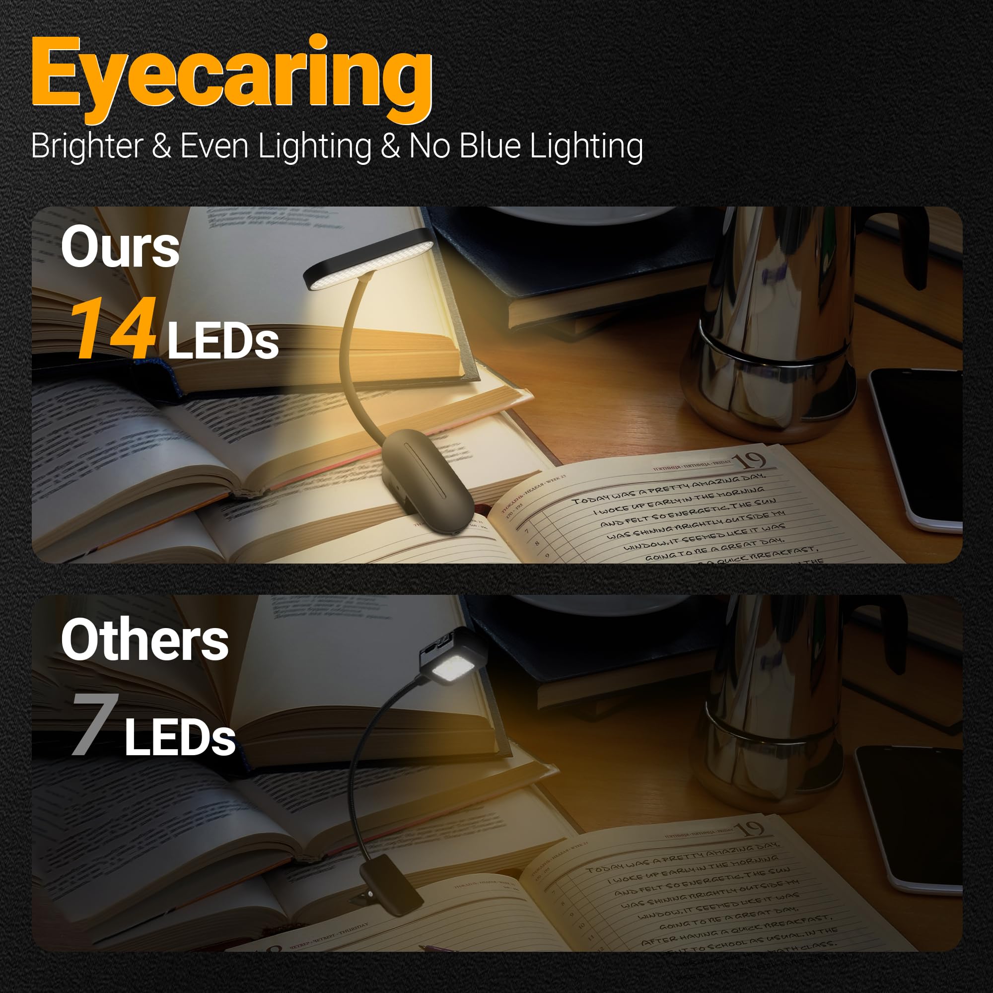 【Long Runtime & Rechargeable Battery】Trust booklights for your lighting needs.1500mAh rechargeable book light delivers 2-70 hours of cordless lighting.USB-powered battery operated design eliminates wire clutter with book light for reading at night