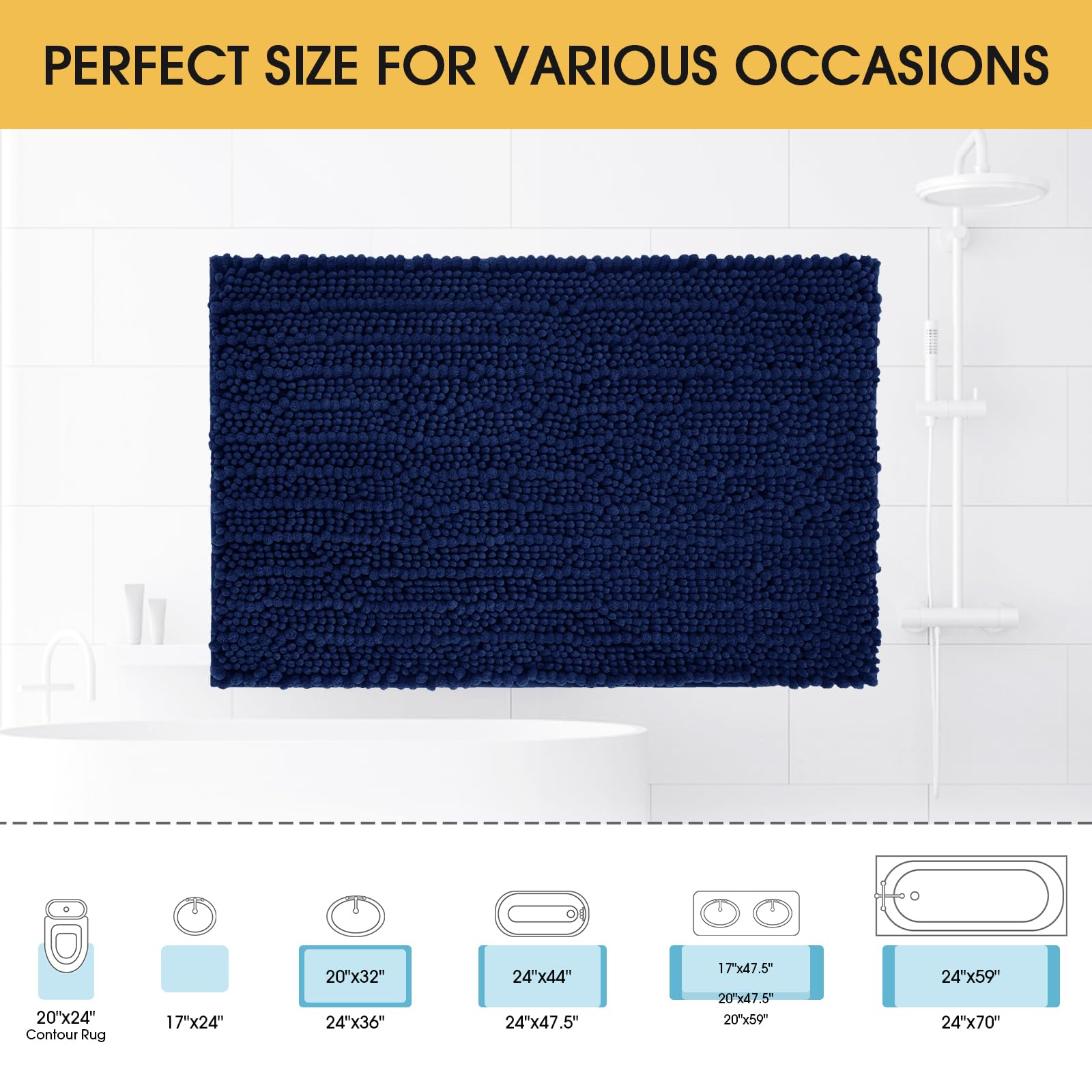LUXURY BATHROOM RUG MAT: Including 1 Bath Rug 20"x59". Made of 100% luxurious chenille fabric microfiber with higher pile than others. The thick and soft chenille helps soothe tired feet and keep your toes warm on the cold floor. The high density and plushness of the chenille offers exceptional comfort and support for your feet. You will feel like stepping on acozy cloud to enjoy the ultimate luxury.