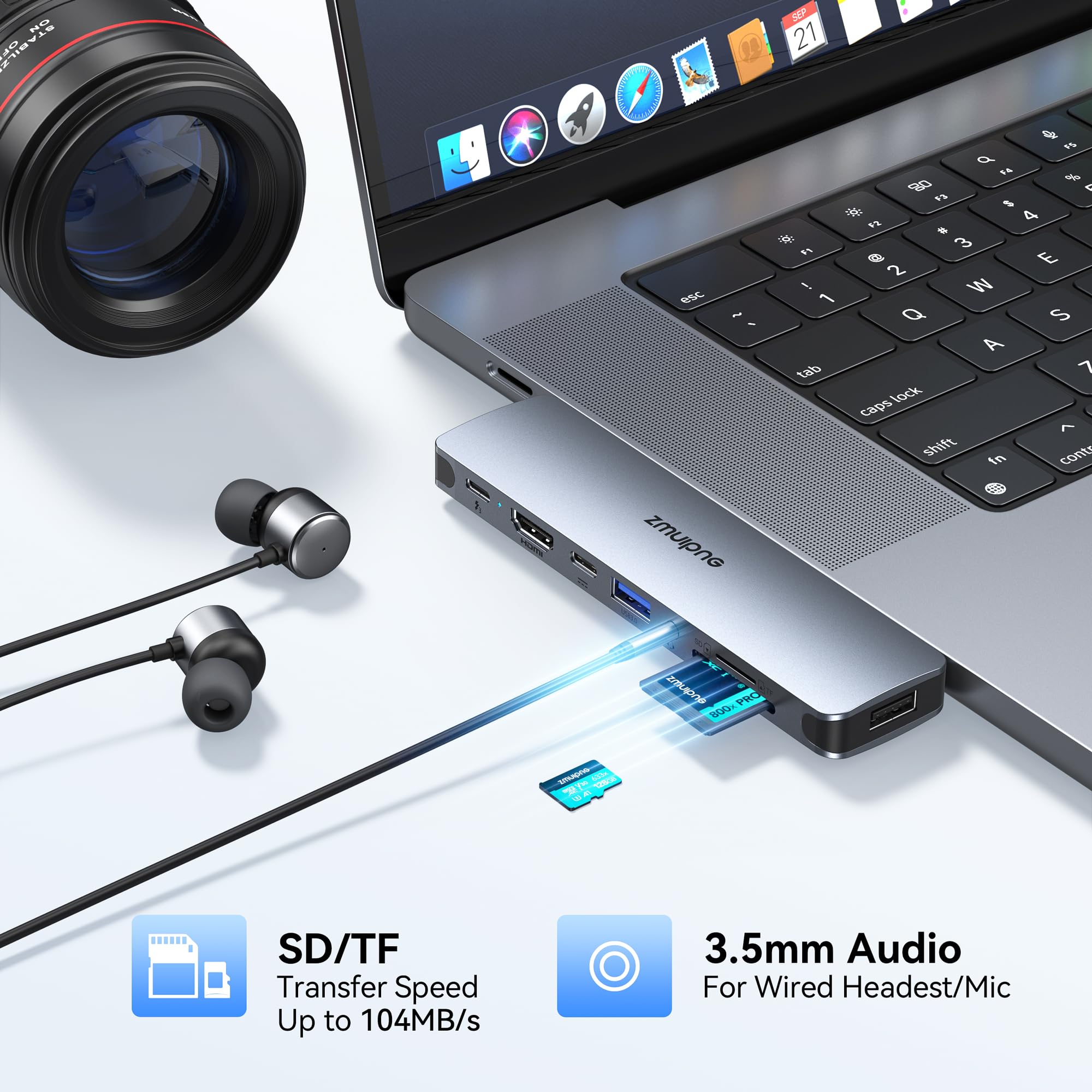 【USB C SD & Micro SD Card Reader Hub】With this macbook pro hub sd card reader,you can conveniently browse photos instantly on your USB-C smartphones/laptops and download hundred photos in seconds to your macbook laptop with highest speed up to 104Mb/s.