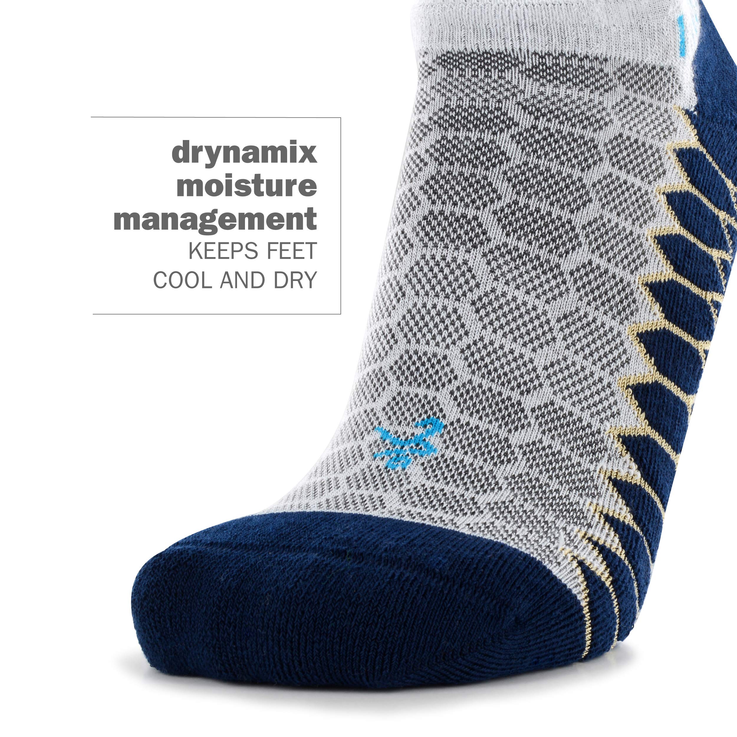 Description The Balega Silver No-Show Compression-Fit Running Sock for Men and Women provides moisture-management and comfort without sacrificing fit and performance. Silver ions are encapsulated in the proprietary Drynamix yarn blend to keep feet clean and dry. Constructed to mimic a running shoe, the varying tension of the fibers and knit patterns throughout the athletic sock lock in the heel and provide compressive arch support for grip and quick pick-up, while allowing the toes to move freely. The seamless, hand-linked toe box minimizes friction for blisters and chafing. A high heel tab and extra deep heel pocket ensures that the sock won’t slip down into the shoe. The Balega Silver No-Show Compression-Fit Running Sock features medium-volume cushioning, ensuring durability for extended training and endurance events.