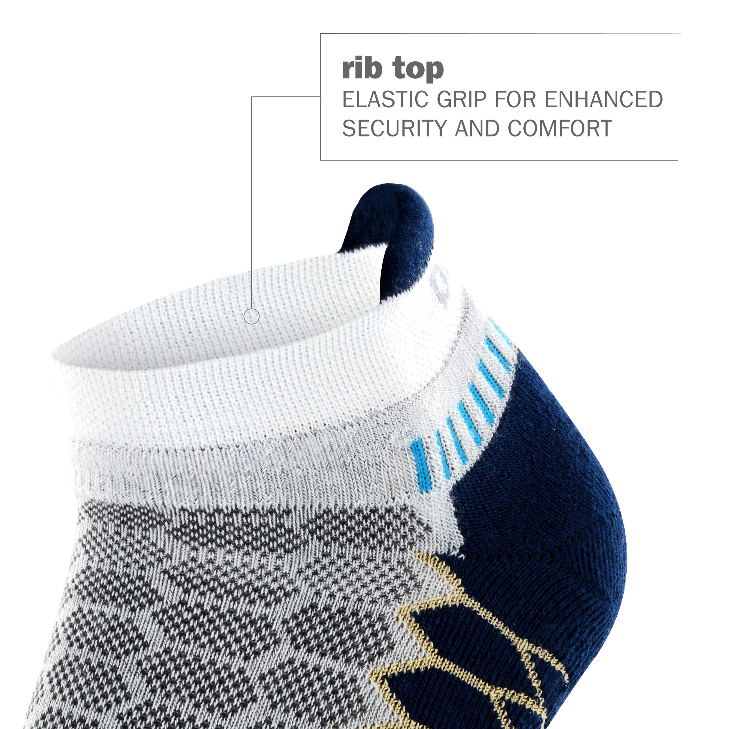 Compression-fit, no-show performance running sock encapsulates silver ions in the yarn to keep feet clean and dry