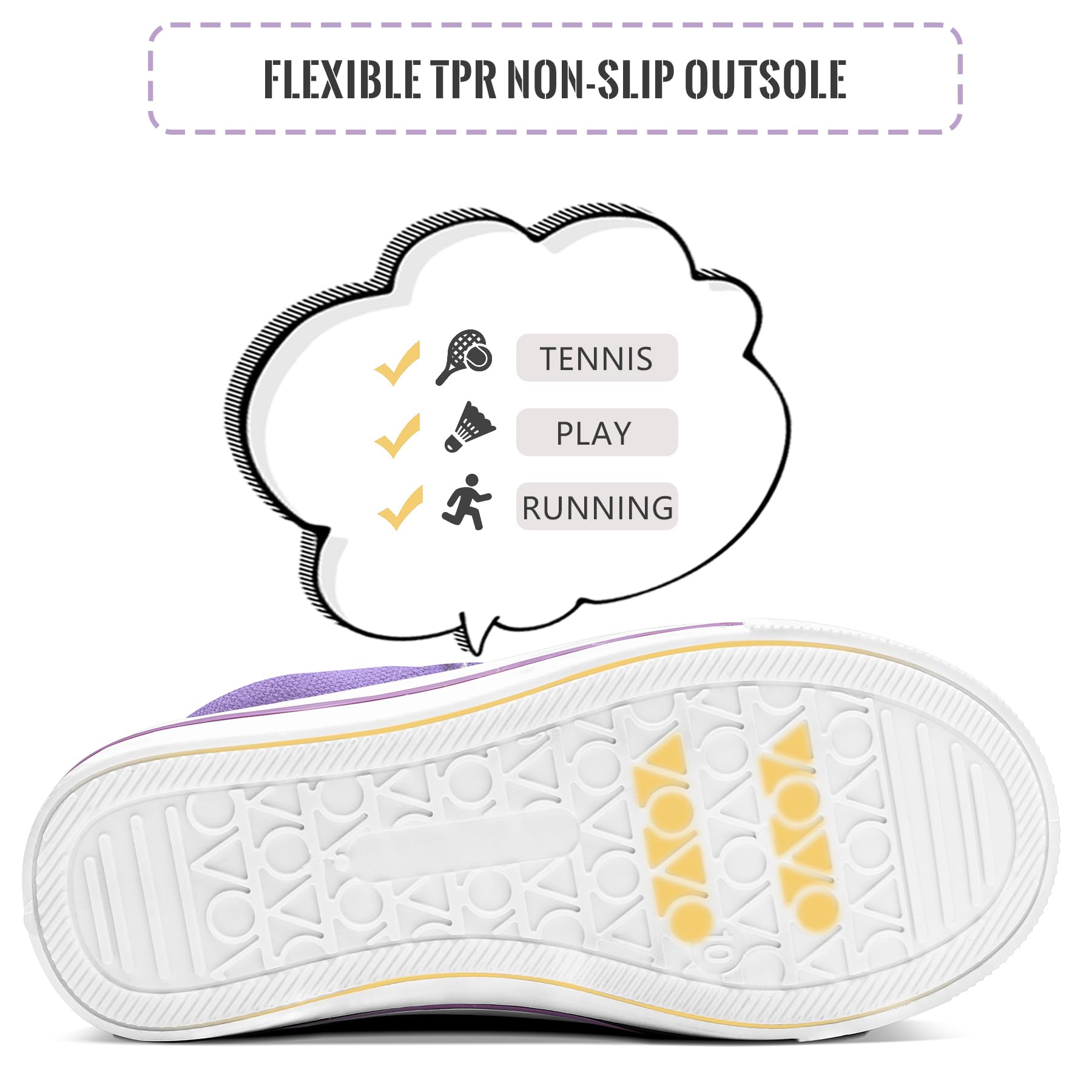 Sturdy & Non-slip Outsole:On the the wear-resistant sole, we add various pattern to increase the grip which will prevent kids from slipping while playing, so they can run more safely.