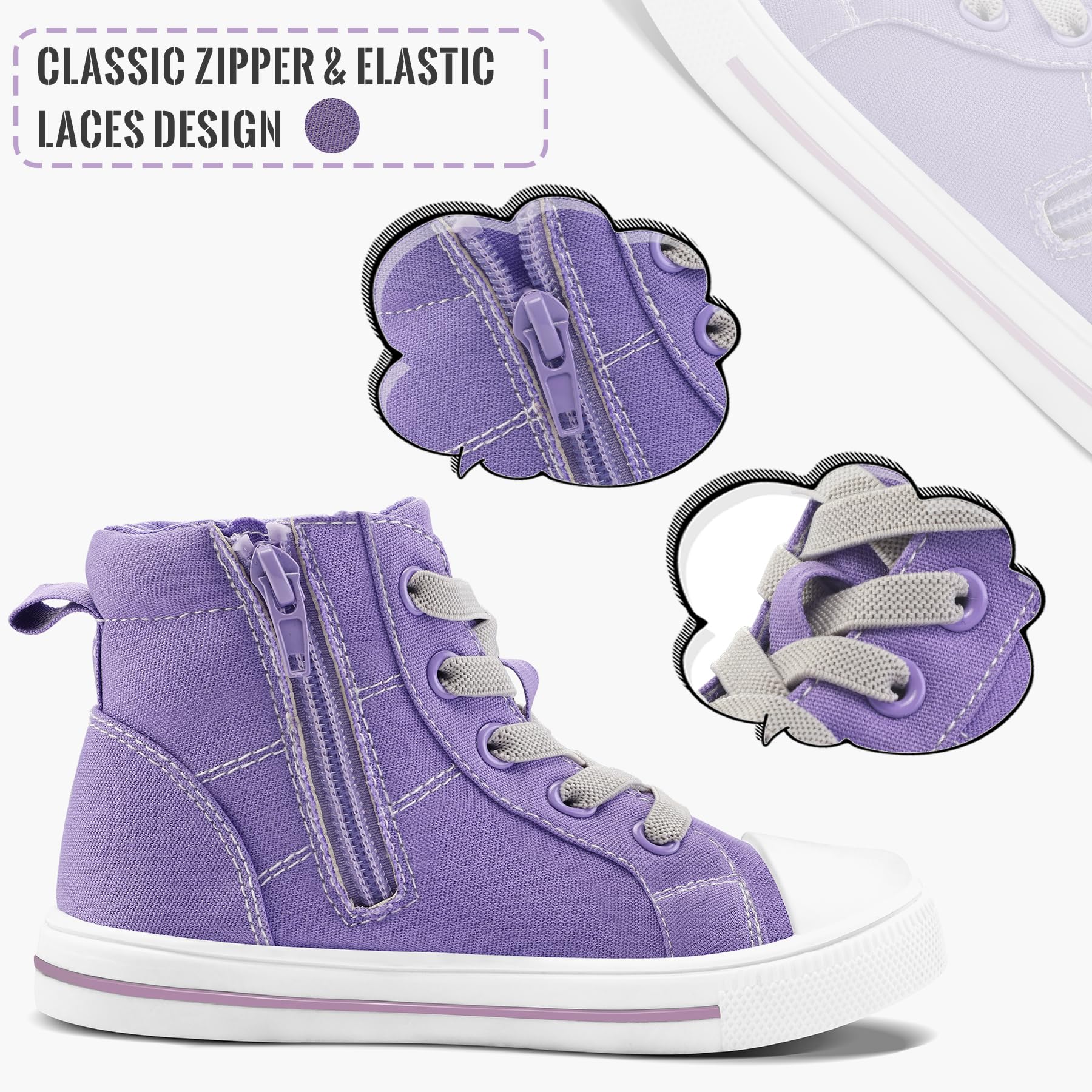 Easy on & Off:Our kids high top sneakers use a zipper closure design, children do not need to tie the laces which is much easier to put on and take off by themselves, and the elastic lace design makes the shoes fitter to the children's little feet.